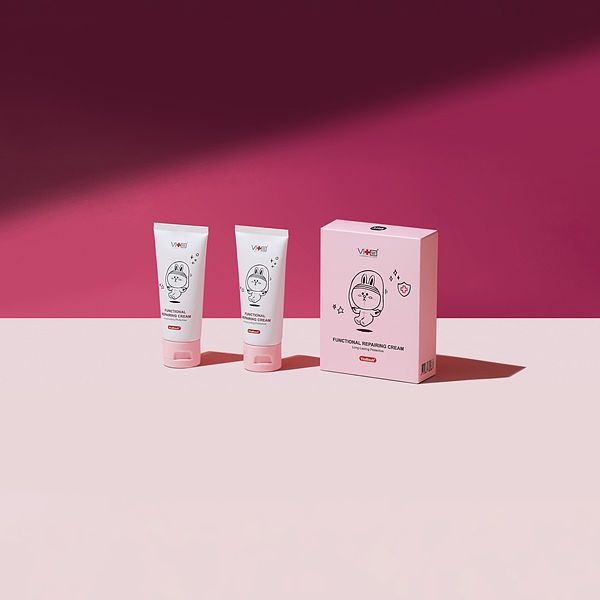 《兔兔粉紅奇蹟修復組》添加粉紅維生素B12、B5與積雪草萃取,能夠幫助肌膚提升修復力,舒緩因乾燥和天氣變換引起的泛紅和不適感,是最適合受損肌膚的天然修復霜!