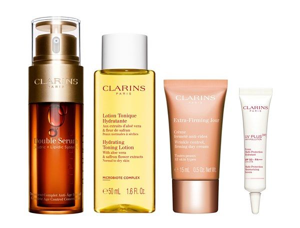 針對VIP主顧客需求量身打造的預購會組合也非常有看點!將日常保養程序直接組成大全套,只需要依據需求用量成套選購即可,省時又省力!例如『超級精華彈出年輕組(67折)』或『發光亮白三步驟組(67折)』就是將抗老與美白保養的完整步驟直接以正貨成組,並搭配同系列旅行裝贈品,實用度超高。抑或有『好孕媽咪幸福呵護組(64折)』可視個人用量需求購買1~2組,輕輕鬆鬆就把全孕期需要的抗紋保養準備到位,是最符合孕媽咪的貼心組合。當然,克蘭詩最厲害的眼部保養,60秒飆速抗老的賽車眼霜(全名”全效緊緻眼霜”)、全新上市的黃金亮眼萃(小名”光圈眼萃”)也不能漏掉,以主顧客最愛的雙瓶組形式登場,等於買2瓶直接打88折又再送半瓶同質產品,優惠滿點!75ml大容量黃金雙激萃也是優惠超值,堪稱黃金粉把握爭奪的第一名必購清單!