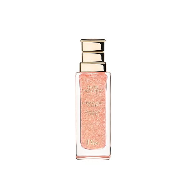 《迪奧精萃再生玫瑰微導精露》,擁有高達92%天然來源成分,蘊含岡維拉玫瑰從花瓣到花梗中宛如玫瑰生命之水-「玫瑰花液」的全方位修護力,並以專利「雙重萃取技術」與專利「酵素金萃技術」,萃取22種微營養素及玫瑰花液的高效修護能量,注入10,000顆「玫瑰金微導膠囊」之中完整封存,打造2倍濃萃微營養素,提升滲透力達75%,締造7大升級,賦予肌膚最至臻奢寵的高效呵護,完美打造玫瑰花瓣肌。