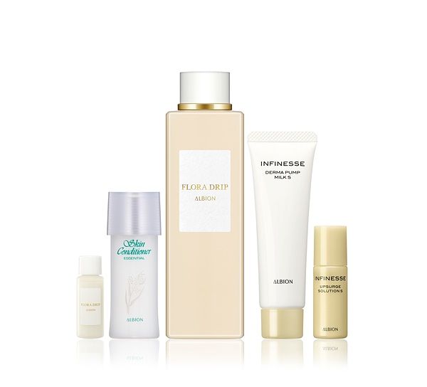 ALBION為了在週年慶寵壞愛用者,第一檻$6000滿額贈「柔嫩光澤美肌組」全面加入熱賣產品,從奇肌修復露d、健康化妝水、黃金全效修護精華油到健康面膜E,實用度超高,輕旅行時帶著走就能擁有柔嫩光澤美肌。