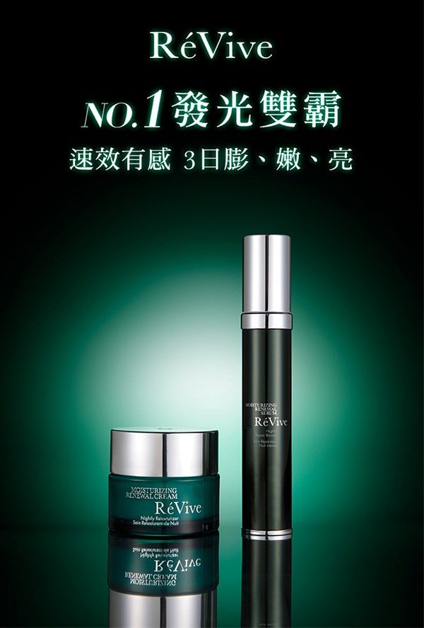 抗老發光權威RéVive,經典熱銷NO.1『光采再生活膚霜』,如醫美“淨膚+脈衝光”雙機雷射般速效煥膚、奇蹟有感細緻嫩亮,獲得無數鐵粉愛用無限回購,創下每兩分鐘賣出一瓶的銷售傳奇,奠定發光霸主地位!搭配其專屬前導拍檔『光采再生活膚精華』,導入品牌獨家抗老核心「Bio-Renewal Technology肌因再生賦活仿生科技」結合「寡胜肽24」,並搭載專利「微脂囊全效滲透技術」,宛如打通肌膚任督二脈、全面激活循環,肌膚柔潤膨彈、修護勻嫩,有如活膚霜推進器般、飆速加乘活膚霜功效,衝破保養停滯期,倍速煥發新生光采,更被網友讚譽「活膚霜+活膚精華是此生不能沒有的一夜亮度破表、超有感雙搭配」!