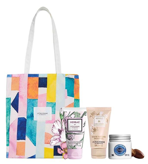 原野之心花舞沐浴膠50ml+橙花&蘭花沐浴膠50ml+乳油木保濕身體霜50ml+繽紛撞色托特袋
