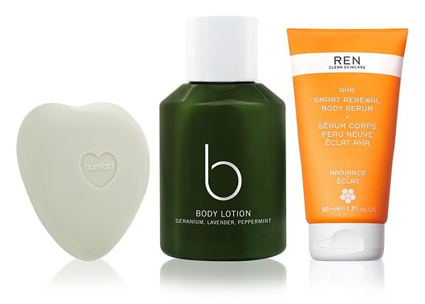 身體保養組合 : REN 鮮果C 亮采煥膚身體精華 50ml、bamford 天竺葵沐浴皂 40g、bamford 天竺葵身體乳 50ml