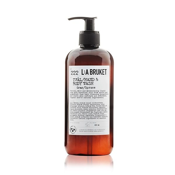 L:A BRUKET 潔膚露採用椰子油來源的植物性清潔成分,泡沫多、保濕度高,可以溫和清潔手部與身體,同時保濕肌膚,使用後潤澤舒適。
