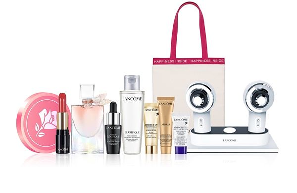百貨週年慶期間於蘭蔻專櫃購買正產品,單筆消費滿 NT$5,000元,除獲得週年慶滿額贈,再加碼「明星十件禮」,總價值高達NT$10,000!