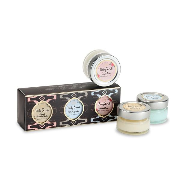 禮盒包含:身體磨砂膏60g X3 (香調:PLV、以色列綠玫瑰、茉莉花語)