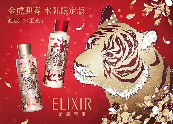連續14年日本熱銷No.1 的保養品牌-怡麗絲爾ELIXIR,運用頂尖膠原蛋白科技,為肌膚注入極致滋養的澎彈能量,雙頰隨時綻放緊緻飽滿的「水玉光」。在2022年1月,怡麗絲爾推出虎年限定組 - 「彈潤保濕水T2 加大版」和「彈潤保濕乳T2 加大版」。在新的一年給肌膚滿滿膠原蛋白活力,養出加倍澎亮的好命美肌。新春限定包裝以吸睛喜氣的紅金色,融合活潑的金虎圖樣,在開春之際,也為每天的保養儀式帶來好運。