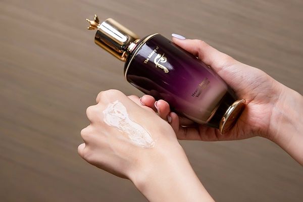 於早晚清潔後,臉部肌膚尚留水氣之際,以還幼本初精華沿肌膚紋理輕抹於臉部及頸部,以利後續保養吸收。接續以還幼平衡露與還幼平衡乳先後搭配還幼平衡養護按摩,以《陰陽調和按摩手法》,由內而外全面保養,為肌膚建立健康平衡,逆齡還幼,成就皇后盛世美顏。