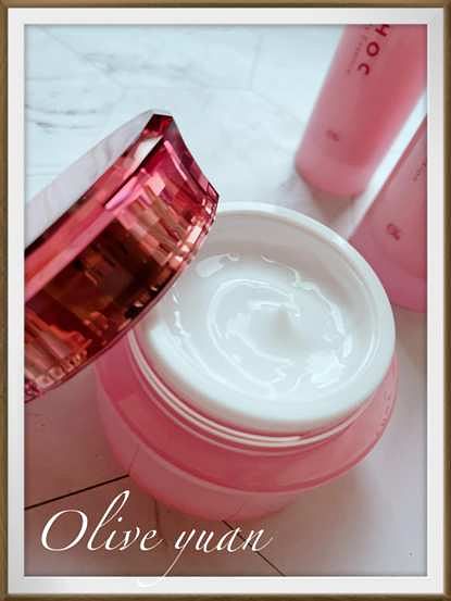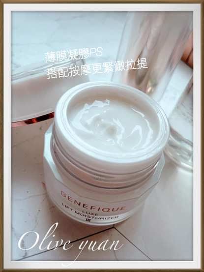 「碧麗妃 極萃奢妍緊緻凝霜III(50g NT3,900)」,這系列也有水凝乳,可以白天用水凝乳,晚上用凝霜,乾性肌膚就早晚用凝霜,滋潤質地幫助優異抗老成分滲透至肌膚有效吸收,立即感受澎彈水潤,凝霜質地比較不厚重黏膩,另外還添加「獨創配方薄膜凝膠PS」,所以搭配包裝上教的“資生堂獨家肌膚緊緻拉提美容法”,輪廓鬆弛困擾會大大改善喔!還能提供全天豐盈潤澤光感!