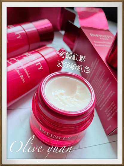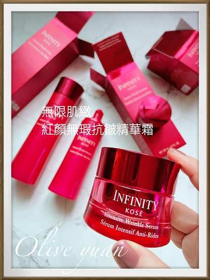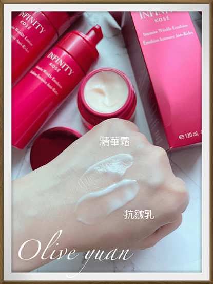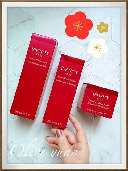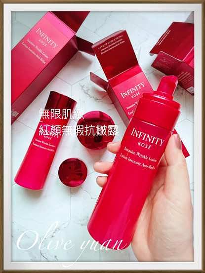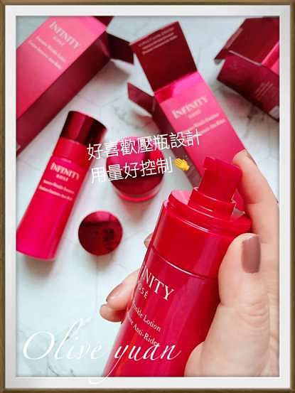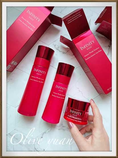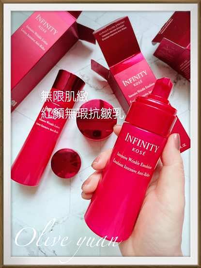 這個系列先推出抗皺精華霜,同年年底才推出抗皺露與抗皺乳,大紅色包裝真的很喜氣,好巧!今天都分享了大紅色保養品!在INFINITY五大系列中算是最單純的,但抗皺成分很厲害,所以價格在中間!也許以後還會推出其他品項吧,例如精華液之類的!而這個系列最主要是用肌膚「絕佳柔軟度」及「緊緻張力」來對抗皺紋,不讓動態紋變成靜態紋。(柔軟度越低的肌膚,越容易出現皺紋,就像乾乾的紙張)