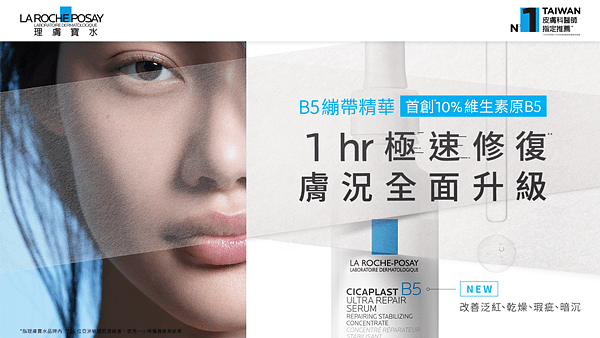 全球新冠疫情邁入第三年,大幅改變原先生活型態,防疫成為生活新日常卻造成肌膚問題更多重複雜化,大幅提高肌膚保養難度,如未能快速修復這些肌膚問題、及時恢復肌膚機能正常運作,將產生更多健康問題隱憂。全球、台灣皮膚科醫師推薦No.1醫學美容領導品牌-理膚寶水LA ROCHE-POSAY匯聚專業皮膚科醫師與科研團隊,針對後疫情引起的各種肌膚問題困擾,於2022年推出業界第一支疫情後為多重肌膚問題量身訂製多效速效修護精華『理膚寶水B5瞬效全面修復精華#B5繃帶精華』其具備優異多效速效修護力,來自於創新研發三大極速修護成分科技【1】理膚寶水獨家.業界唯一首創最高濃度10%維生素原B5:極高濃度10%維生素原B5能發揮強大修護力,立即重建肌膚屏障防護、舒緩肌膚不適,加速修護受損部位及提高肌膚防禦力及保濕力,全面修護各種肌膚問題【2】HEPES煥膚複合物:加速肌膚老廢角質代謝、淡化痘疤瑕疪,膚色更加均勻明亮&平滑細緻【3】APF理膚寶水溫泉萃取因子:有效平衡肌膚上微生態,強化肌膚對外防禦力;再加入「理膚寶水温泉水」、「玻尿酸&甘油」協同達到長效保濕與舒緩肌膚各種不適症狀。『理膚寶水B5瞬效全面修復精華#B5繃帶精華』在專業皮膚科醫師嚴格監控下,臨床實證使用1小時後,可迅速提升68%肌膚屏障力,高濃度10%維生素原B5會在肌膚形成保護性薄膜,如同「隱形繃帶」包覆呵護肌膚,為肌膚建構全面屏障防護網,快速阻斷外來刺激因子同時對內強化修護效果,有效改善泛紅/乾燥/瑕疵/暗沉等多重肌膚問題,為後疫情時代保養提供最快速多效全新選擇!