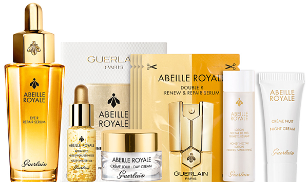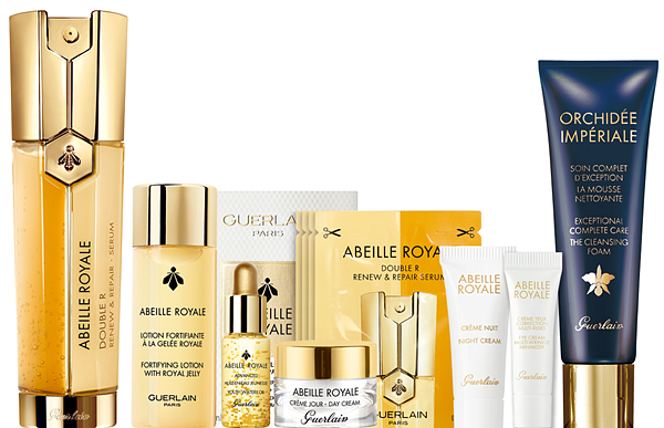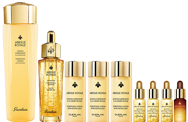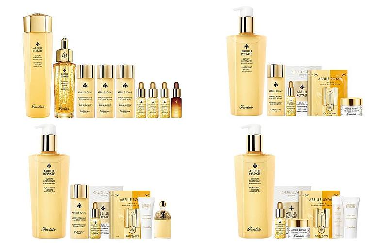 組合內容:皇家蜂王乳雙導精華50ml(正品)/皇家蜂王乳蜜露 40ml/皇家蜂王乳平衡油3G 5ml/雙導精華體驗禮(輕巧盒裝版)/蜂王乳修護晚霜 5 ml/蜂王乳蜂蜜修護霜 7 ml/蜂王乳超拉提亮眼霜 3ml/蘭鑽氧生潔顏乳霜30ml。(註:各百貨通路、法國嬌蘭台灣官方線上旗艦店優惠組合略有不同,以各通路公告為準)