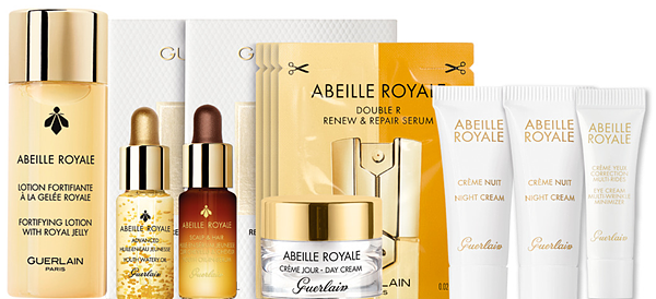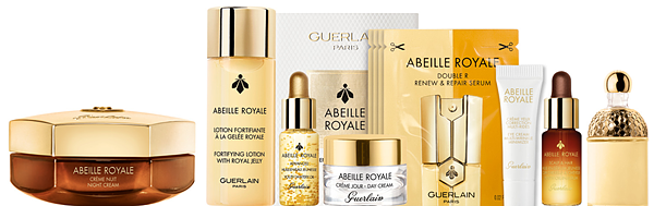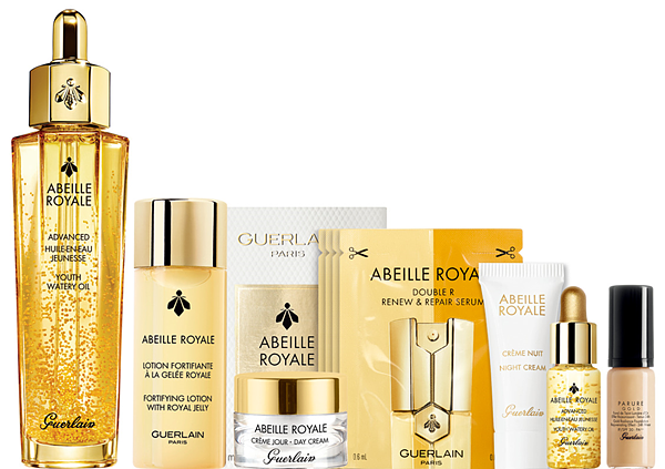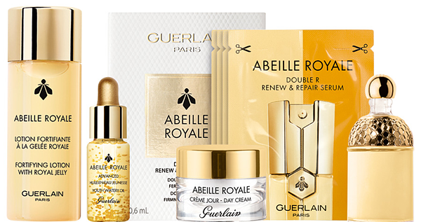 組合內容:皇家蜂王乳修護晚霜50ml(正品)/皇家蜂王乳蜜露 40ml/皇家蜂王乳平衡油3G 5ml/皇家蜂王乳雙導精華體驗禮(輕巧盒裝版)/皇家蜂王乳蜂蜜修護霜 7 ml/皇家蜂王乳超拉提亮眼霜 3ml/皇家蜂王乳頭皮修護精華5ml/花草水語 陽光甜橘淡香水7.5mll。(註:各百貨通路、法國嬌蘭台灣官方線上旗艦店優惠組合略有不同,以各通路公告為準)