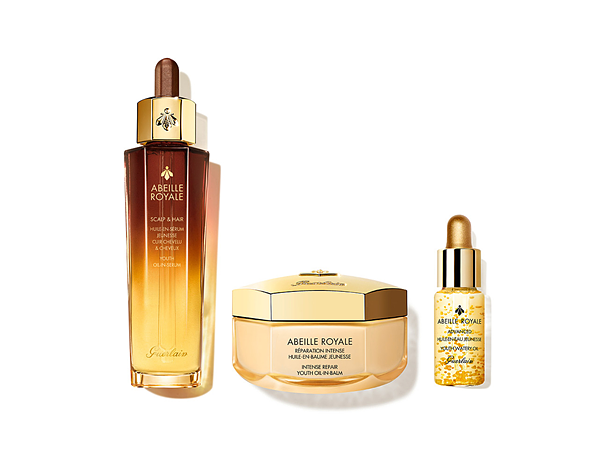 組合內容:皇家蜂王乳平衡油3G 30ml(正品)/皇家蜂王乳蜜露 40ml/雙導精華體驗禮(輕巧盒裝版)/皇家蜂王乳頭皮修護精華5ml/蜂王乳臉部身體全能乳霜5ml。(註:各百貨通路、法國嬌蘭台灣官方線上旗艦店優惠組合略有不同,以各通路公告為準)