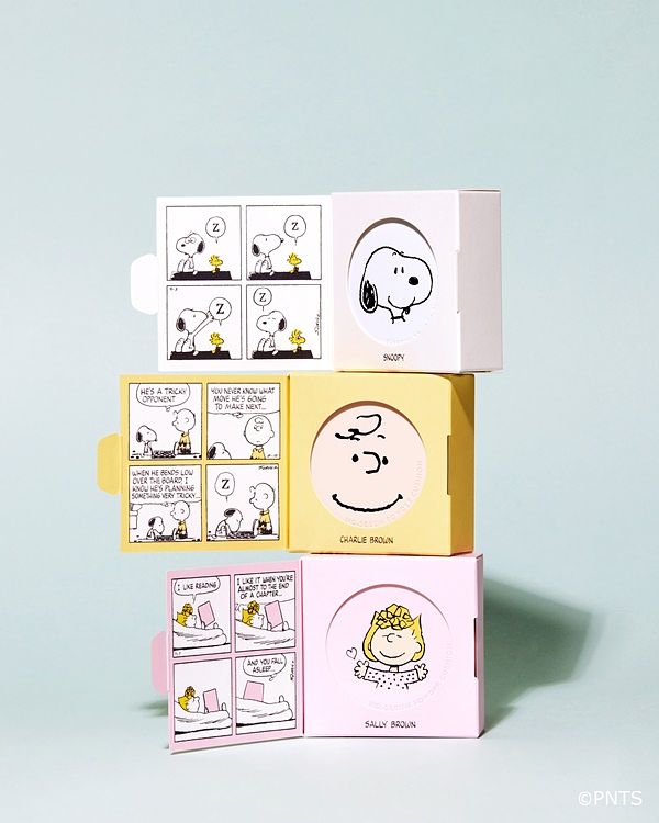 2022史努比限量版共有3種色號款式,不僅粉撲也有心臟爆擊的可愛細節設計,甚至連包裝盒都附上療癒的四格漫畫,讓你從開箱時就能和史努比漫畫角色們一起度過幸福的時刻!