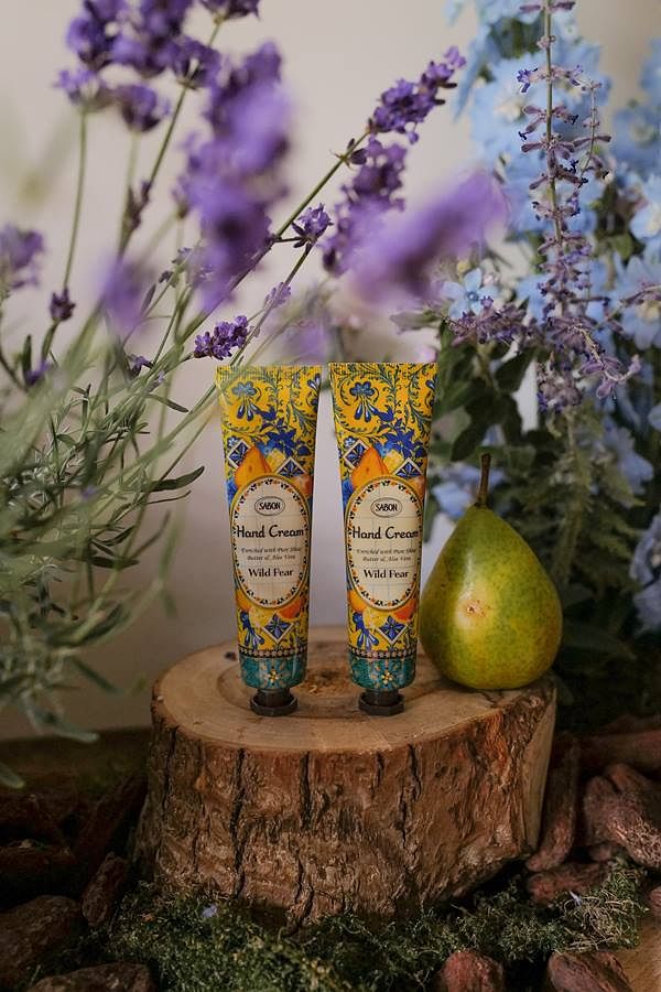 南歐市集與繽紛野梨限量系列的視覺設計靈感源自於地中海沿岸葡萄牙與西班牙皆有的花磚藝術,融合些許新藝術風格(Art Nouveau)與拼貼藝術,磁磚繪上花草果物等自然元素,並搭配銘黃、地中海藍、白色等花磚彩繪的經典配色,詮釋出屬於SABON南歐市集既繽紛活力又古典優雅的獨特視覺風格。此外,每個繽紛野梨身體磨砂膏戴上果醬般可愛的「小浴帽」,每一個細節都呈現出明亮快樂的氣氛!