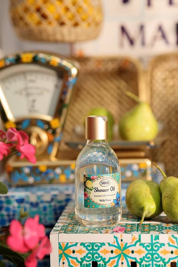 SABON沐浴油擁有最保濕的清潔力,同時輕輕搓揉即有豐富細緻的泡沫,而限量繽紛野梨的輕快活潑香氣為春夏的沐浴時光增添歡愉的氣氛。SABON沐浴油注入四種營養豐富的植物油:橄欖油、酪梨油、荷荷巴油、小麥胚芽油,在沐浴後依然感受到保濕滋潤的肌膚,清透不油膩,鎖住水分恢復柔嫩與彈性。