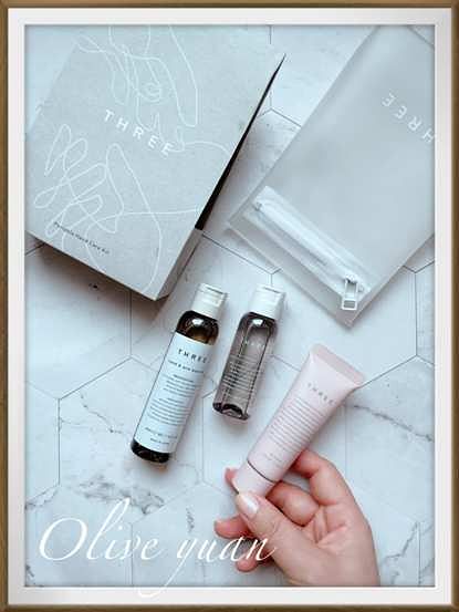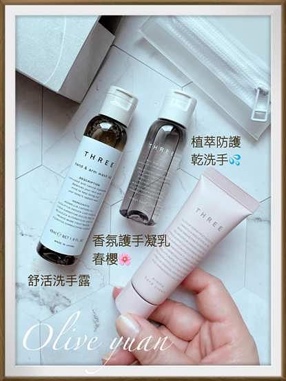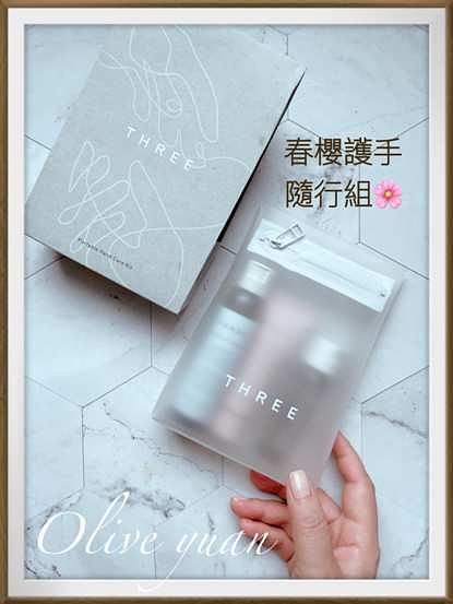 這是THREE限量發售的「春櫻護手隨行組(NT1,600)」,這個很重要喔!而且做成小瓶可以隨身攜帶真的很棒!適合用來送禮物!裡面有「舒活洗手露(48ml)」、「植萃防護乾洗(30ml)」、「香氛護手凝乳 春櫻(25g)」。