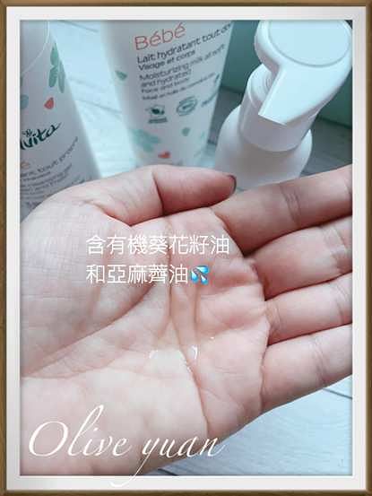 「寶寶柔嫩保濕乳」容量很大真的是太好了,不然一下就會被我用完,它雖然是寶寶專用而且含「有機亞麻薺油」,但質地很水感,使用時水水嫩嫩很涼爽,但用完之後,又能感覺到肌膚被附上了一層保濕膜,加上我又很喜歡這個味道,所以最近白天都用這個,晚上就用按摩油。