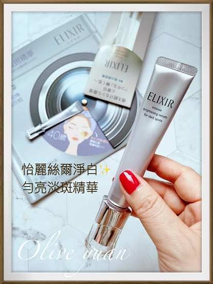 這是「ELIXIR怡麗絲爾 淨白勻亮淡斑精華(22g NT1,750)」,怡麗絲爾就是主打「綻放無瑕水玉光」肌,這款淡斑精華能讓肌膚1天保濕穩膚,2週淨潤透亮,1個月激速淡斑,化妝水後局部使用,吸收後再使用後續基礎保養。(品牌是建議乳液後使用,但化妝水後、我都會先用眼霜及局部淡斑精華)