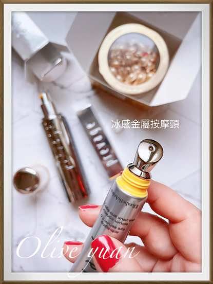 除了強大抗老成分「艾地苯」,還有消除肌膚疲勞的「美白肽」,提升防護力的「麥角硫因」,改善彈性與緊緻度的「牡丹花瓣萃取物」,高效抗老「維他命E」,最後是改善黑眼圈,提拉輪廓的「山楂和茉莉萃取物」等。使用方法沒技巧,主要都是提拉向上,有魚尾紋的人,可以像熨斗一般繞圈圈,很舒服喔!平常工作到一半覺得雙眼皮時,也會拿來按壓冰鎮一下眼周肌膚。