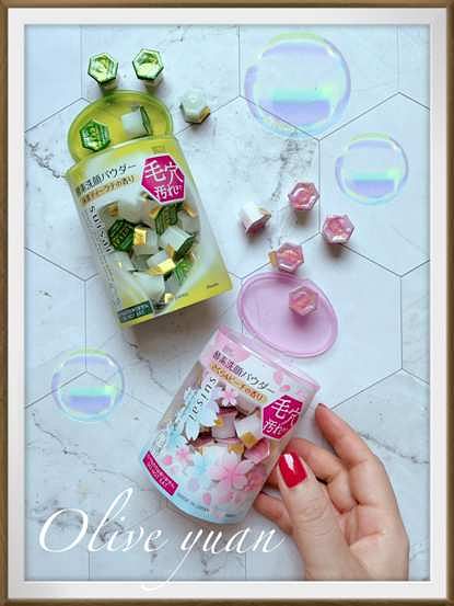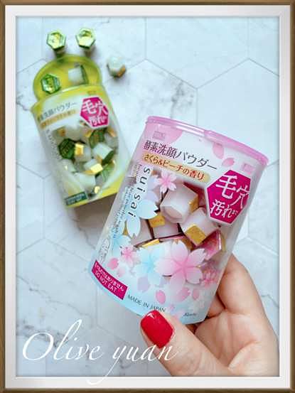不覺得這個綠色跟粉紅色放在一起超級可愛嗎?好像一對小情侶!綠色是之前跟大家分享過的「suisai 淨透酵素粉 N(抹茶那提香)」,當時就知道接著會推出粉紅色櫻花款,果然超迷人的!而且有櫻花茶的甜甜香味。