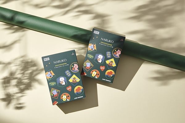 本次BT21 The Green Planet的露營風格與環保意念,也應用到了黑面膜的紙盒包裝上,NARUKO牛爾官網版本的米色盒,以BT21角色們環繞盒身,就像跳著營火舞般熱鬧;MOMO旗艦館版本的深綠色盒,則是貼滿BT21角色布徽圖樣,如同相片牆一樣,紀錄戶外生活的點點滴滴。延續NARUKO品牌的包裝概念,內側也是滿滿的隱藏圖案,絕對不能輕易丟棄!簡單動手翻轉出實用小抽屜,就能讓BT21天天陪伴你讀書、上班。