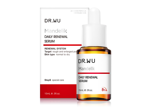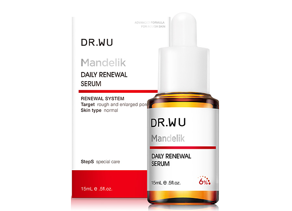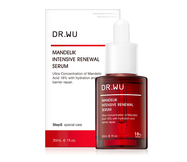 適合一般、混合、油性肌膚或耐受性較高的肌膚進階煥膚使用。經吳英俊醫師多年研究發現,當杏仁酸濃度在18%最能被肌膚吸收,因此自2011年產品問世以來DR.WU一直堅持18%的黃金濃度。能深入角質深層作用,使用7天能減少粉刺27%、毛孔緊緻增加22%,一夜改善痘痘6.9%*。添加大分子玻尿酸、β-聚葡萄醣體,能有效補水舒緩肌膚。本次更換上限量紅色新裝,大氣優雅的瓶身擺在梳妝台上更顯尊榮感,半透光瓶身也方便消費者隨時了解瓶中餘量。