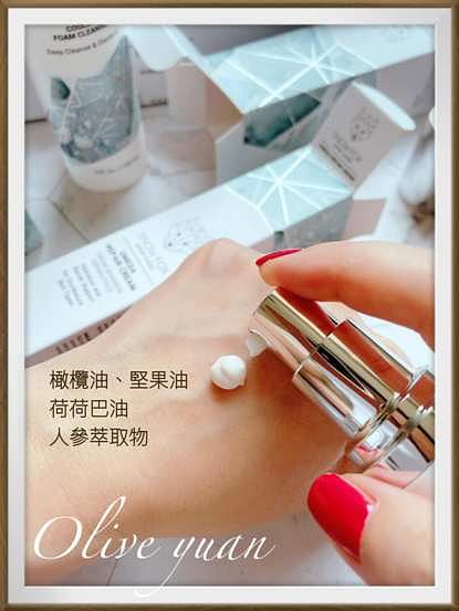 「橄欖油」含必需脂肪酸Omega3、6、9及高濃度角鯊烯,能迅速修護角質層,提升防禦力及鎖水力,「堅果油」含棕櫚油脂肪酸Omega7,同時亦含Omega 6與9,不飽和脂肪酸能促進肌膚健康抗衰老,「荷荷巴油」與人體皮脂最相似,所以特別親膚好吸收,「人參萃取物」能夠促進肌膚循環,易於自我修復。