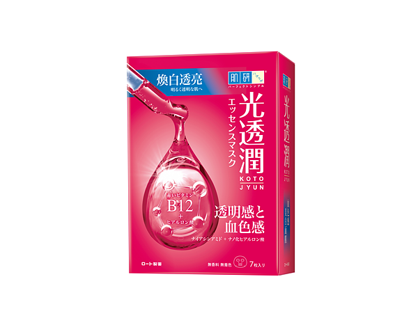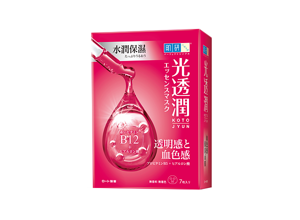 全新「肌研光透潤血色感面膜」系列,添加了被稱為紅色維他命的維他命B12,能調理肌底循環,改善暗沉蠟黃;同時嚴選經典玻尿酸保濕成分,能瞬間釋放水分長效潤澤,使肌膚散發紅潤健康光澤。每片面膜富含27mL精華液,搭配舒適柔軟的彈性面膜布,獨特立體剪裁,連不容易服貼的鼻樑、眼周都能緊密包覆,完美貼合全臉。「肌研光透潤血色感面膜」系列採用弱酸性溫和配方,無添加香料、礦物油、酒精,亦無添加任何人工色素,面膜布及精華液呈現之淡粉色為維他命B12原色,讓各種膚質都能安心使用,輕鬆實現透亮紅潤光采!