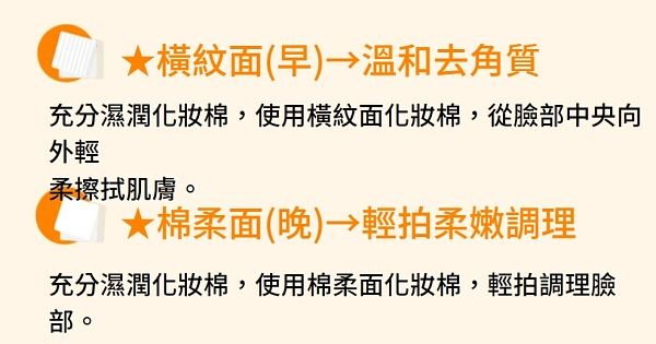 質地感受:質地超級水感,輕拍就立刻被肌膚吸收,在肌膚表層留下乾爽舒適感、但同時卻有肌膚被保濕的感覺,建議早晚搭配化妝棉使用,早上運用化妝棉的橫紋面溫和去角質;晚上則用棉柔面輕拍調理。