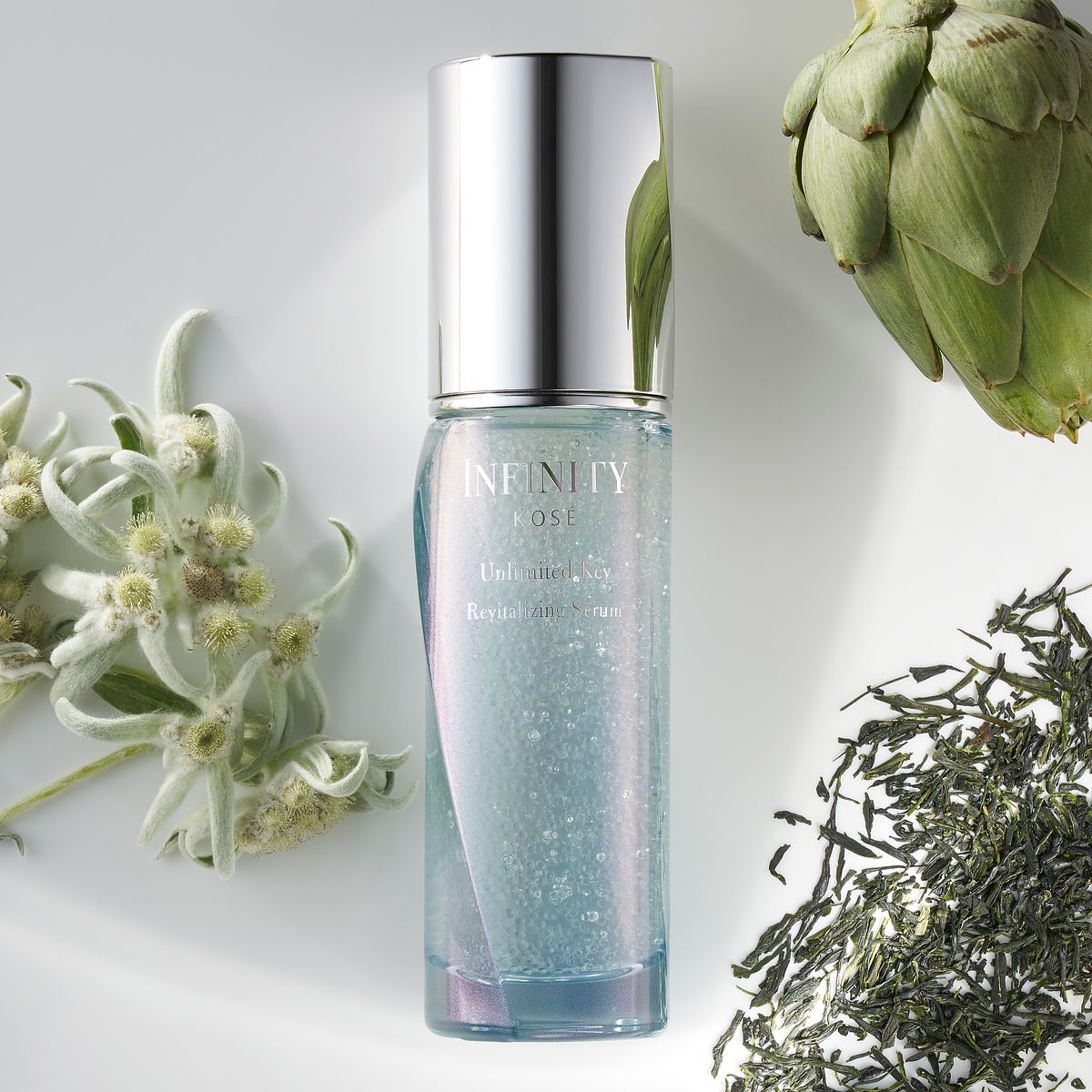 無限肌緻系列著眼於改善熟齡肌的角質層保養而生。如果出現角質層狀態不好,肌膚潛在的功能也會隨之低下,導致水分或美容成分無法被完整儲存於肌膚內。致力於維持角質層健康,無限肌緻系列商品大多皆添加具有功效的雪絨花淬取液。無限肌緻系列誕生的同時,秉持著全新獨創的開發理念,也明確地將保養功效展現在肌膚之上。搭配完美密封技術,使高濃度的美容成分能完整滲透至肌膚。例如,使用高絲獨創技術,將潤澤成分封存於美容油的科技等等,高絲透過長年累積的技術與研究,開發了無限肌緻保養系列商品。期望讓每個人都能感受到「前所未有的效果」。我們抱持這樣的想法,不斷地進行研究。今年,無限肌緻系列迎來了 20 週年,希望體現將每一個人的美麗潛都發揮到極致的信念,於是誕生了極限釋能微粒精華。