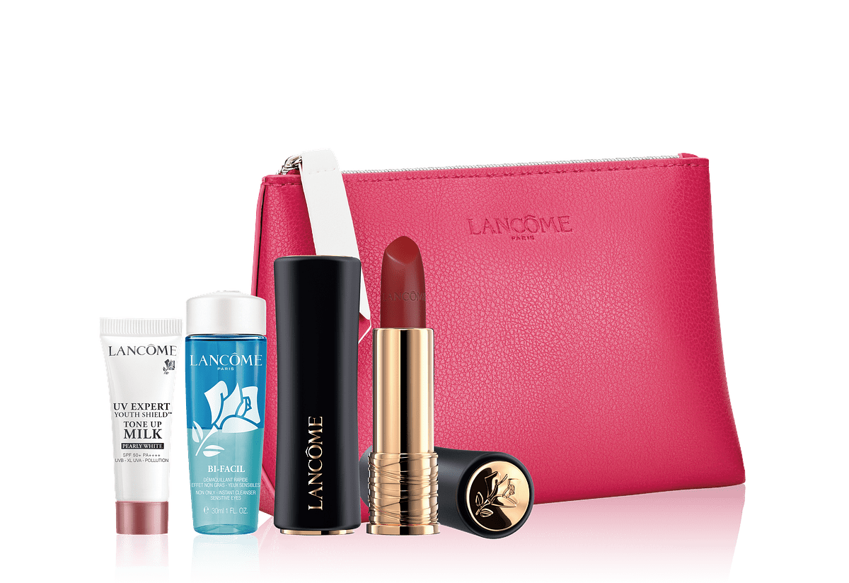 首一週除了獻上兩款「小黑瓶」+「極光水」不單飛特惠組,蘭蔻更將於限定百貨櫃點,針對入手前述兩款雙星特惠組的顧客,送出限量「寶寶粉迷你登機箱」,將即將能搭機旅行的歡樂,隨著這款包含一只粉色迷你登機箱+玫瑰氣泡酒+酒杯的獨特禮讚,讓獲得這份限量贈禮的幸運兒通通帶回家!