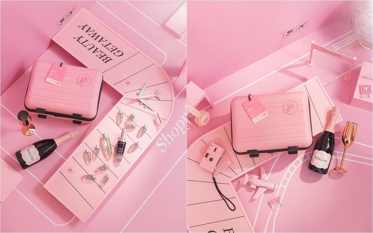 此外,寵粉不手軟的蘭蔻更於週年慶的開打首日推出,於限定百貨櫃點*,購買黑白雙星「嫩亮雙星賦活組」或「嫩亮雙星極光組」任一組,蘭蔻將加贈限量「寶寶粉迷你登機箱」(數量有限,贈完為止)!超可愛的寶寶粉色迷你登機箱中,裝著蘭蔻精心搭配的玫瑰氣泡酒與奢華玫瑰金酒杯,完美呼應今年的Beauty Getaway美麗起飛週年慶主題,讓大家享受偽出國放鬆度假感!