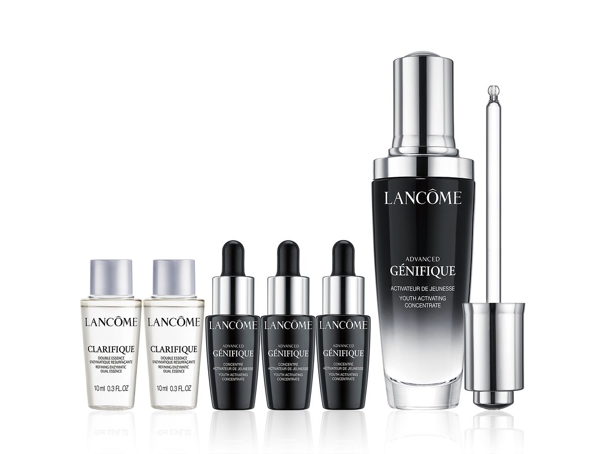 蘭蔻一年四季長賣的全明星包括:保養雙強─小黑瓶《超未來肌因賦活露》、極光水《超極光 活粹晶露》,少女肌製造器《零粉感超持久粉底》,以及每位女性夢幻保養清單的頂級玫瑰霜 《絕對完美黃金玫瑰乳霜》,2022週年慶為了回饋粉絲並吸引初入門顧客,也推出買明星正 貨、送小ML數明星產品的組合。無雷無廢品、讓人用到一滴不剩的內容,趁一年中最大檔期 收入,絕對是最睿智的決定。