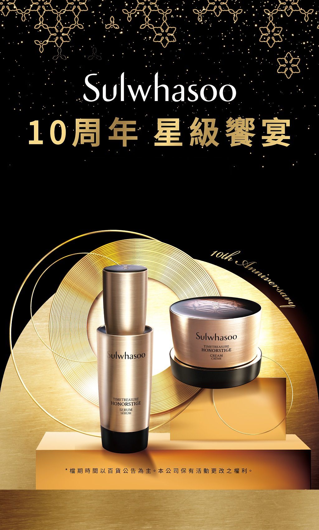 雪花秀自2012年9月在遠東SOGO百貨台北忠孝館進駐第一家專櫃,至今與台灣粉絲一起走入10年的美麗旅程。在今年周年慶期間,特別展開「10周年 星級饗宴」大舉歡慶,推出五星寵粉計畫:星級產品、豪華組合、驚喜滿額禮、頂級服務、及尊寵體驗,更首次推出單品任選2件10% off,寵粉等級關關都令人驚喜。2022年周年慶必敗一站,絕不能錯過雪花秀「10周年 星級饗宴」!
