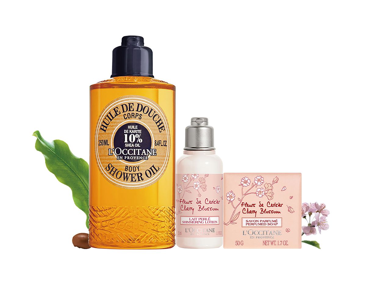 乳油木保濕沐浴油250ml、櫻花香氛皂50g、櫻花美體乳35ml