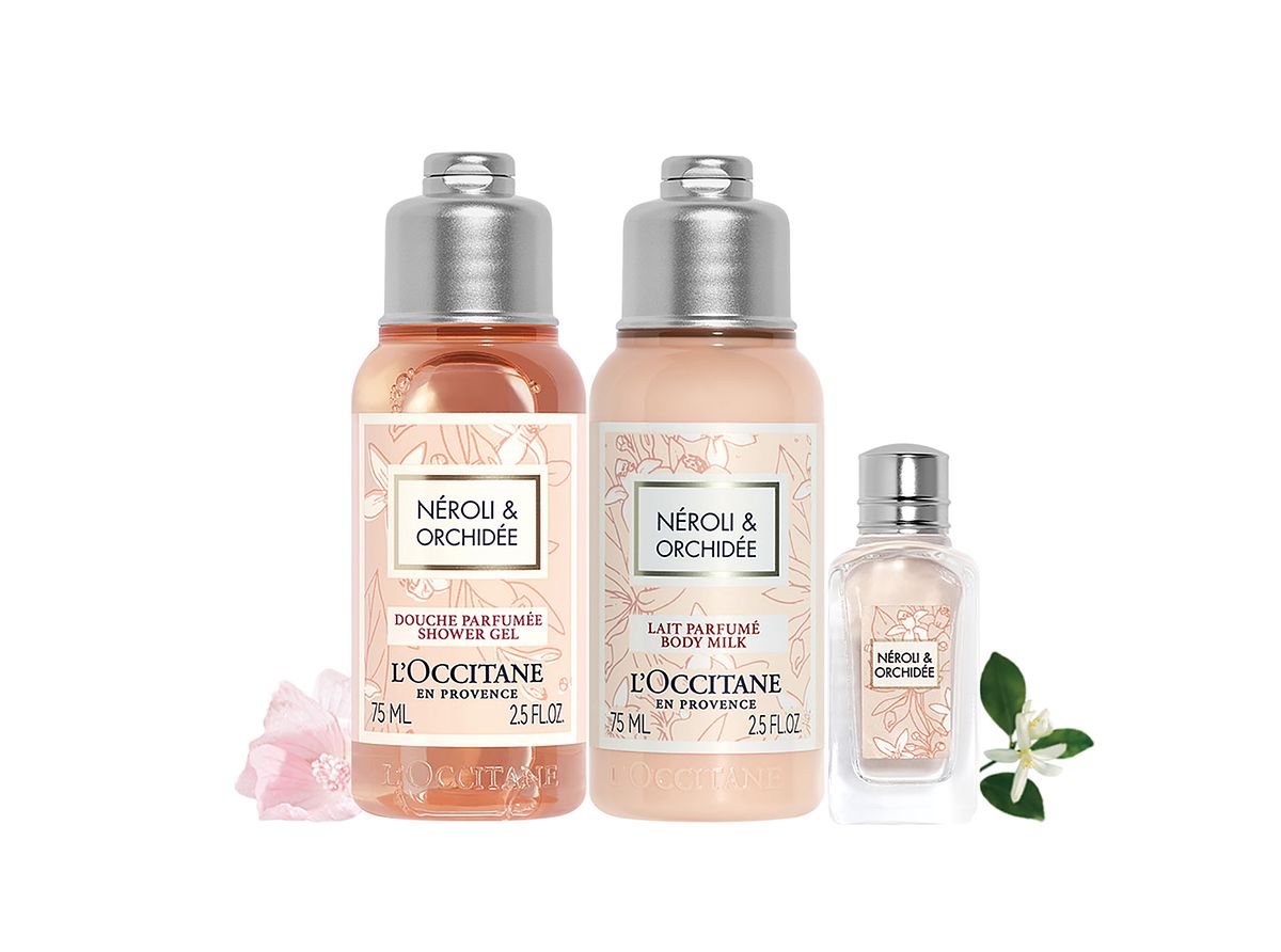 橙花&蘭花沐浴膠75ml、橙花&蘭花美體乳75ml、橙花&蘭花淡香水7.5ml