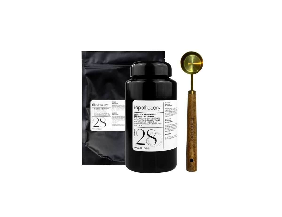 2022年9月甫登台的ilapothecary英草社,上市後造成熱銷搶購缺貨現象,緊急在周慶前補足商品,首年在台灣的週年慶即推出深受好萊塢及歐洲名媛明星愛用的熱銷組合「No.28 紫晶鎂夢好眠浴鹽400g」及同樣400g的補充包贈送木柄不銹鋼鍍鈦挖勺,泡澡時不僅可控制浴鹽份量亦可增加療癒儀式感,產品優惠組合價低於5000元,另一組合同樣詢問度破表的兩大菁植膏「No.101 SOS香莢蘭菁植膏100g」及「No.8 靜蝶金盞花菁植膏50g」,組合加贈黑曜岩晶石板能搭配使用在穴點的按壓舒緩,且黑曜岩是吸納性最強寶石,可排出負面能量及濁氣,絕對是舒壓首選!