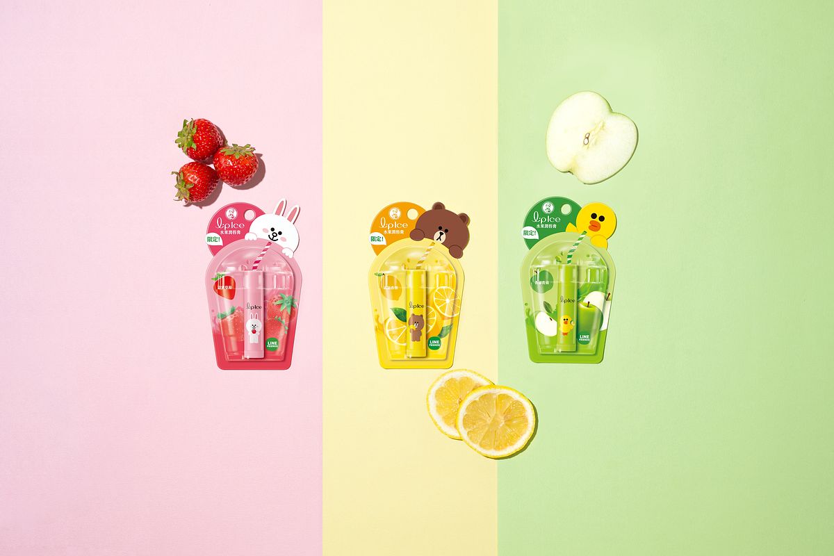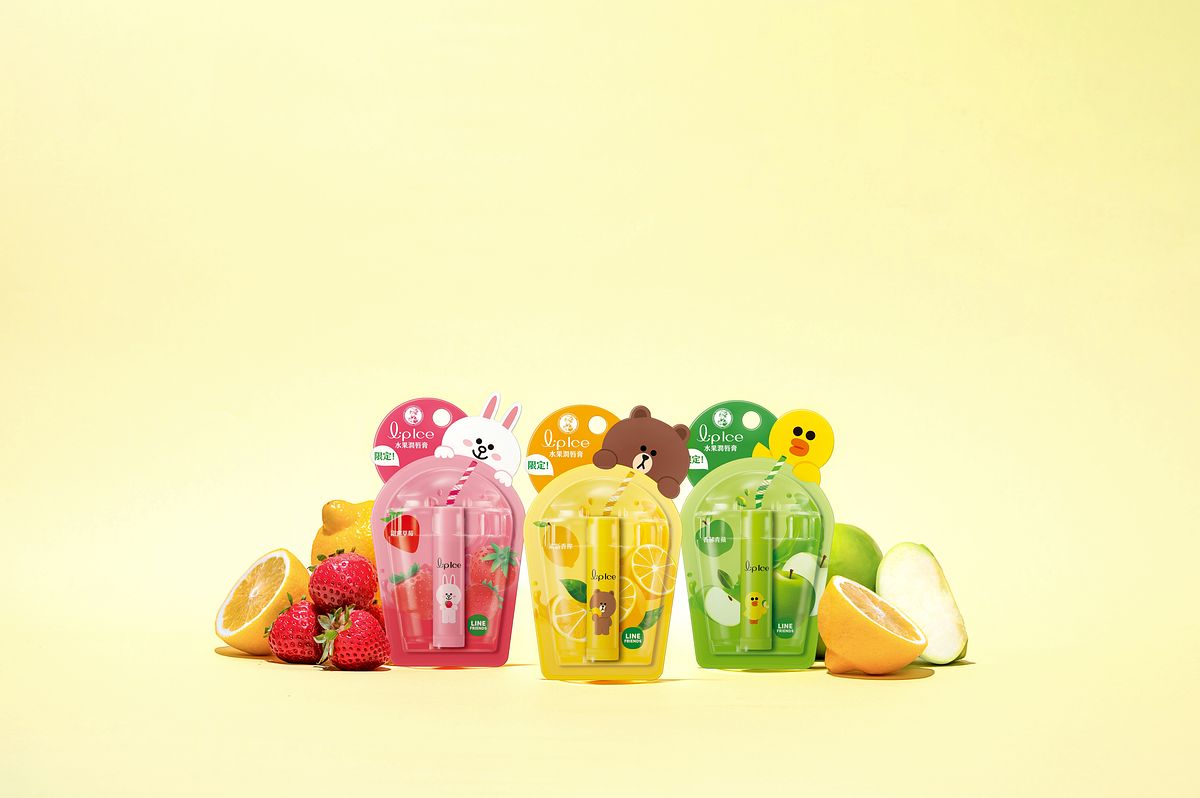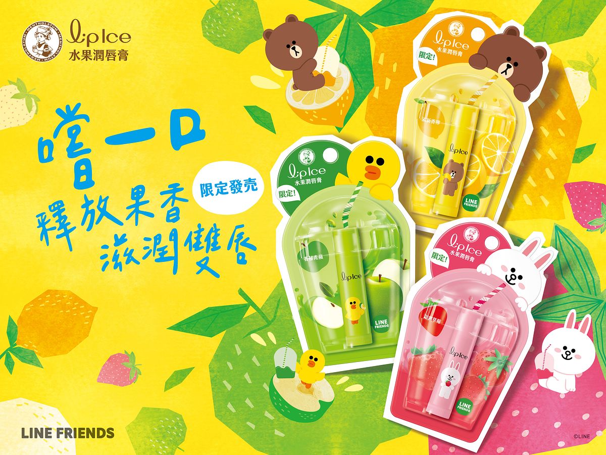 陣陣的清甜果香,讓熊大忍不住和兔兔及莎莉躍上包裝,一同出現在「曼秀雷敦LipIce水果潤唇膏」!立體的果汁杯造型,彷彿LINE FRIENDS明星們正開心的享用著香甜果汁,超可愛模樣馬上融化少女心,讓人沒有一秒猶豫,直呼「不包款不行」!三款包裝分別融入清新檸檬、香甜蘋果和甜蜜草莓於潤唇膏中,輕輕一抹,清新果香瞬間包裹雙唇,連心情都一起被滿滿地滋潤!