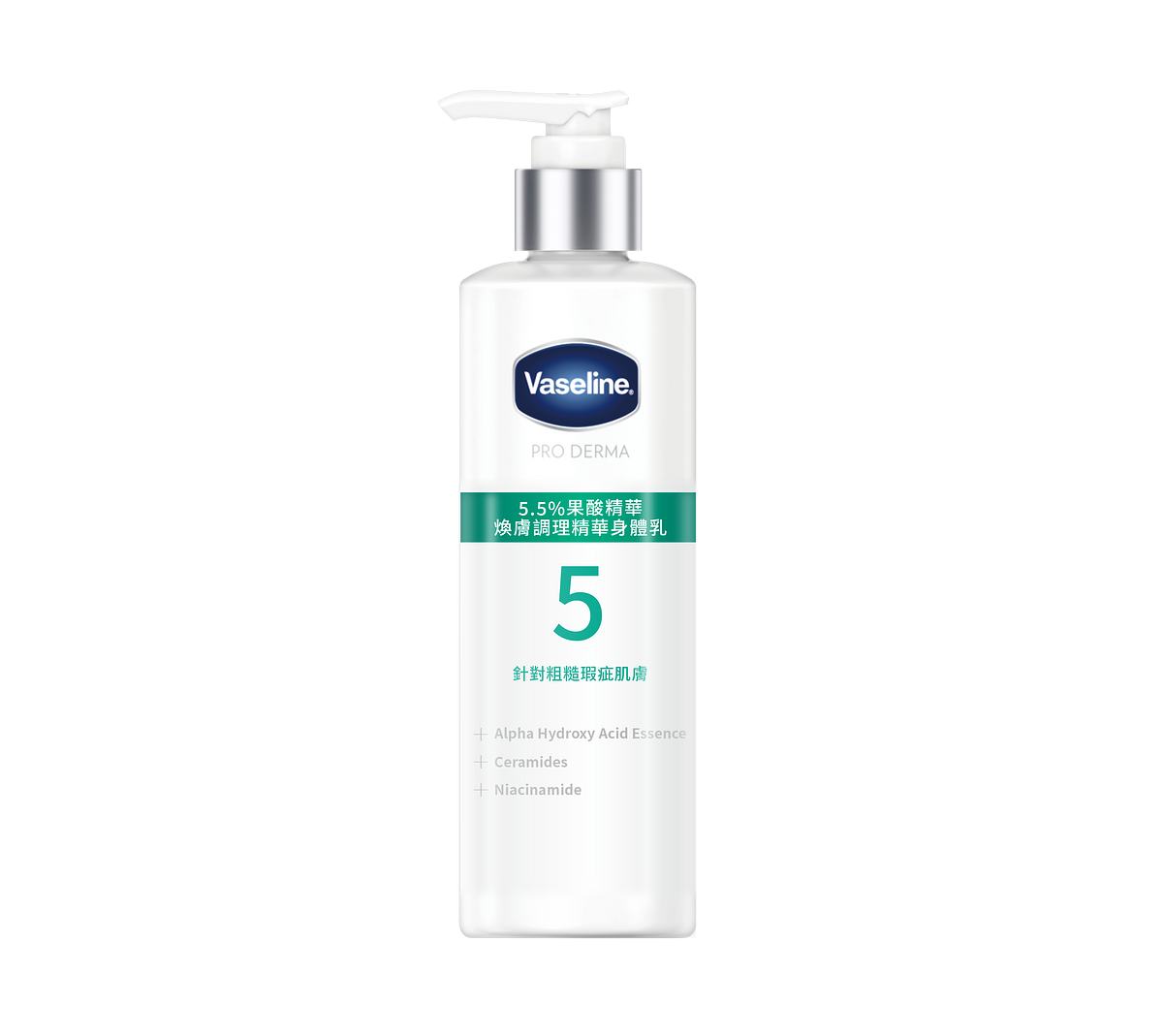 看著肌膚上凸起的小顆粒,不平滑的觸感和視覺上的不悅,使自信大幅下降。對粗糙瑕疵肌,交給5.5%果酸精華煥膚調理精華身體乳!。注入5.5%果酸精華#,溫和代謝全身的老廢角質,有效淨化毛孔,使肌膚細緻平滑。另含有神經醯胺與菸鹼醯胺,滲透至肌膚中,穩定並修護肌膚屏障,提升肌膚保濕與細緻度。消費者實證:100% 的測試者在3天+即刻感受肌膚粗糙得到改善、98%的測試者使用後肌膚細緻水潤。3天亮滑+淨膚拋光,減少肌膚顆粒產生,展現平滑拋光肌。