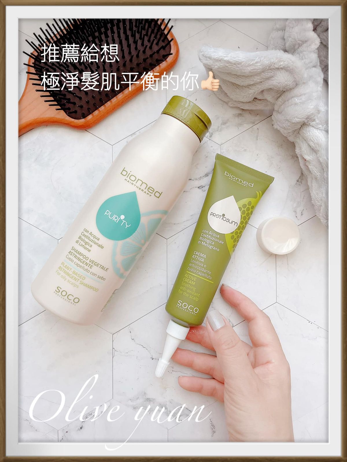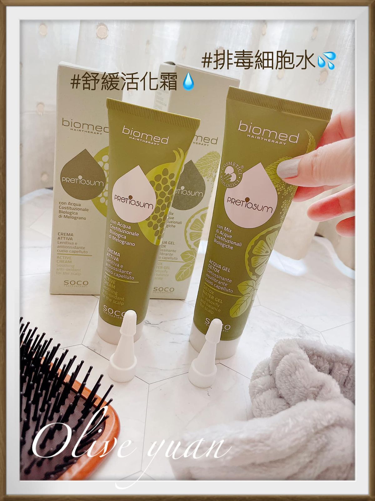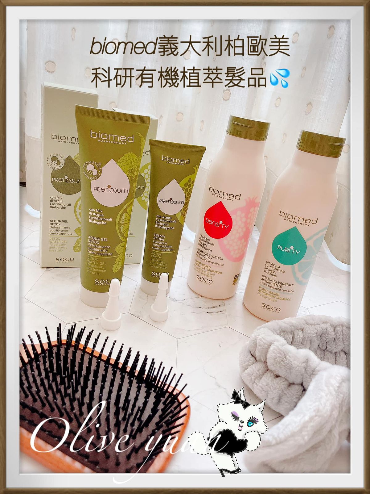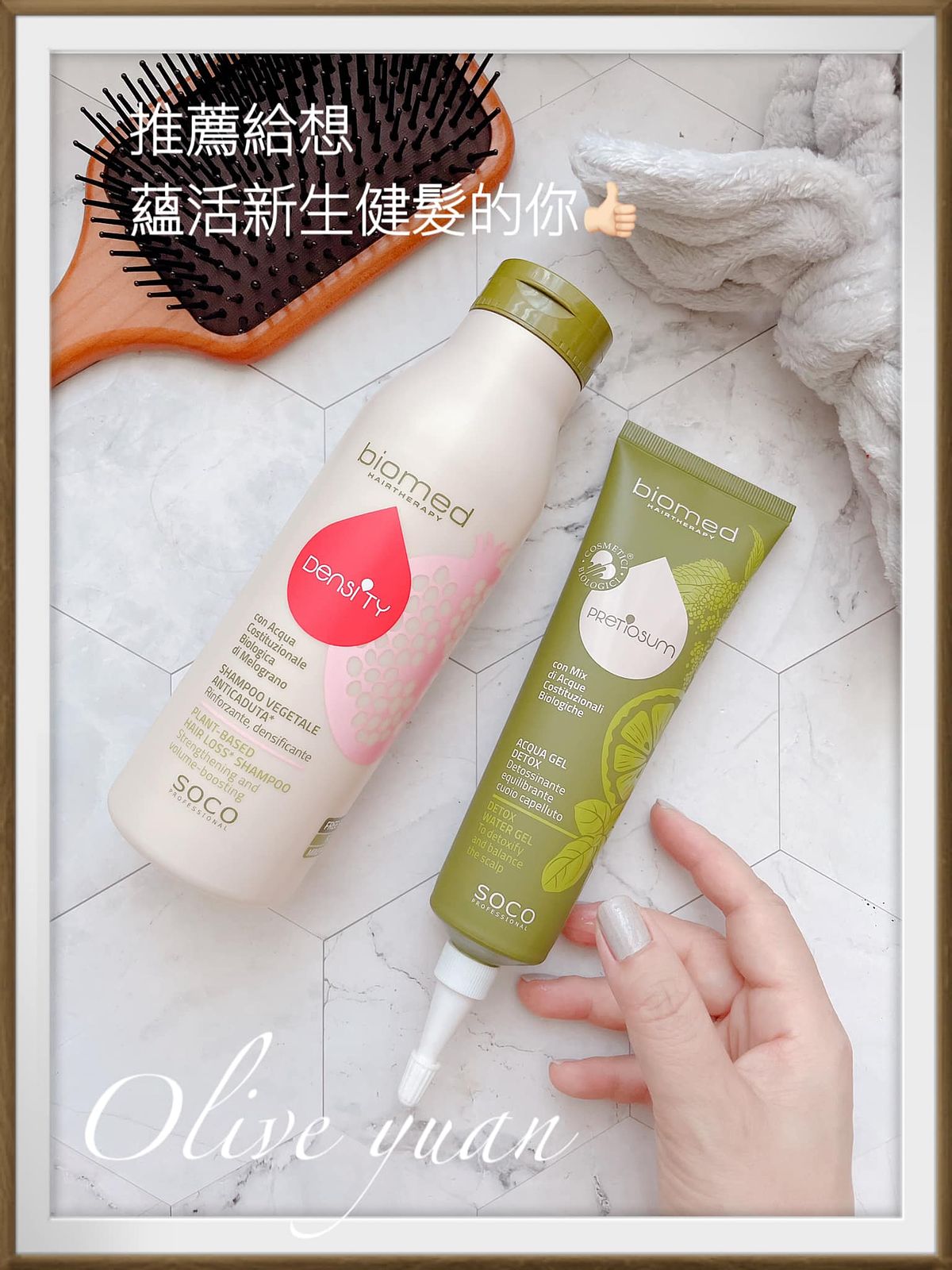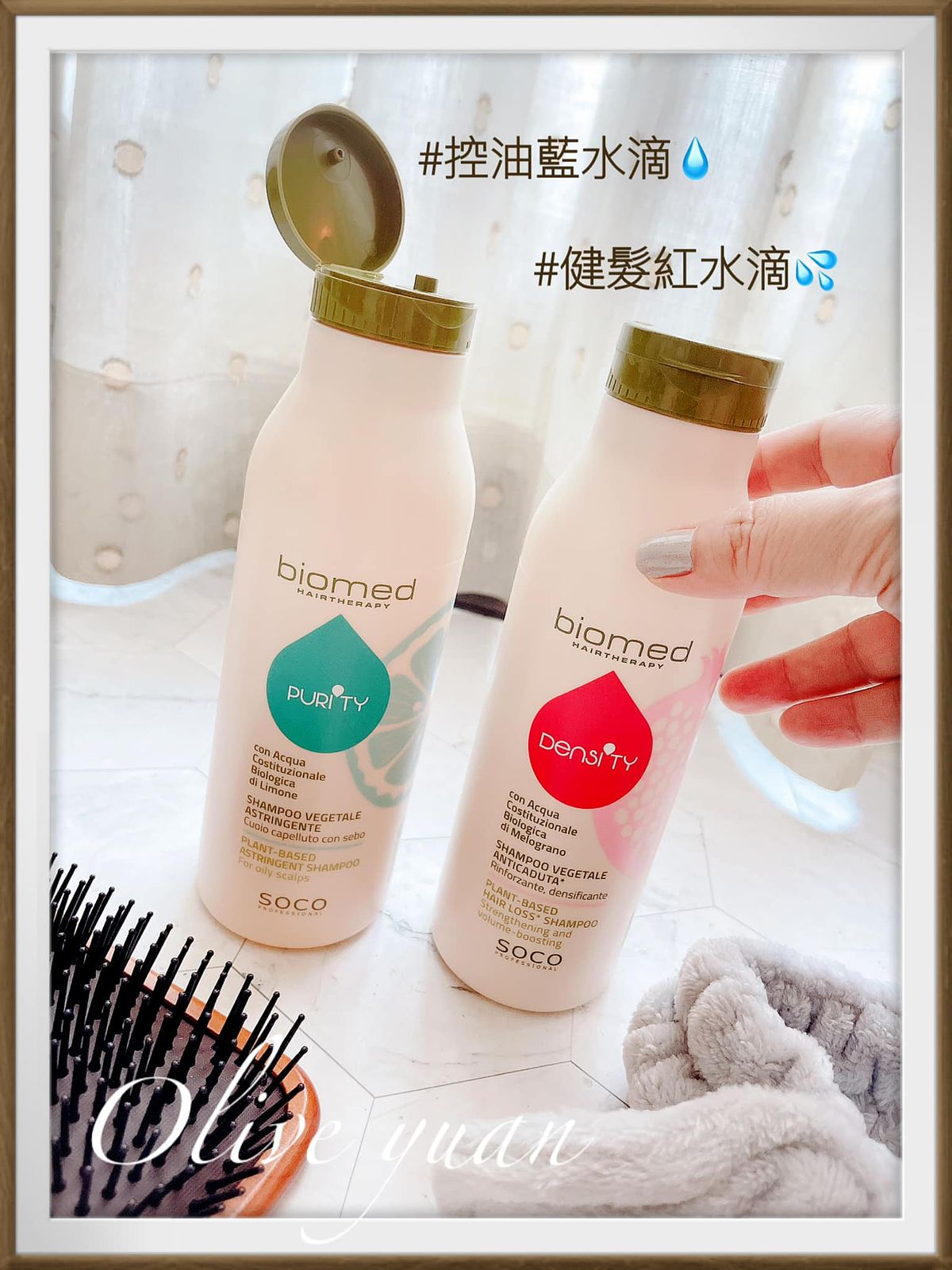 我最近都在用這個─「Biomed 柏歐美 義大利科研有機植萃髮品」,台灣目前有5大系列,我這種怕髮量變少、怕頭皮老化、怕頭皮臭的人,就入手了「滋養髮浴(健髮紅水滴)」及「收斂控油髮浴(控油藍水滴)」,重視頭皮保養的我還追加了 髮根水凝露(義大利稱之為【排毒細胞水】)及髮根精華霜(舒緩活化霜)。