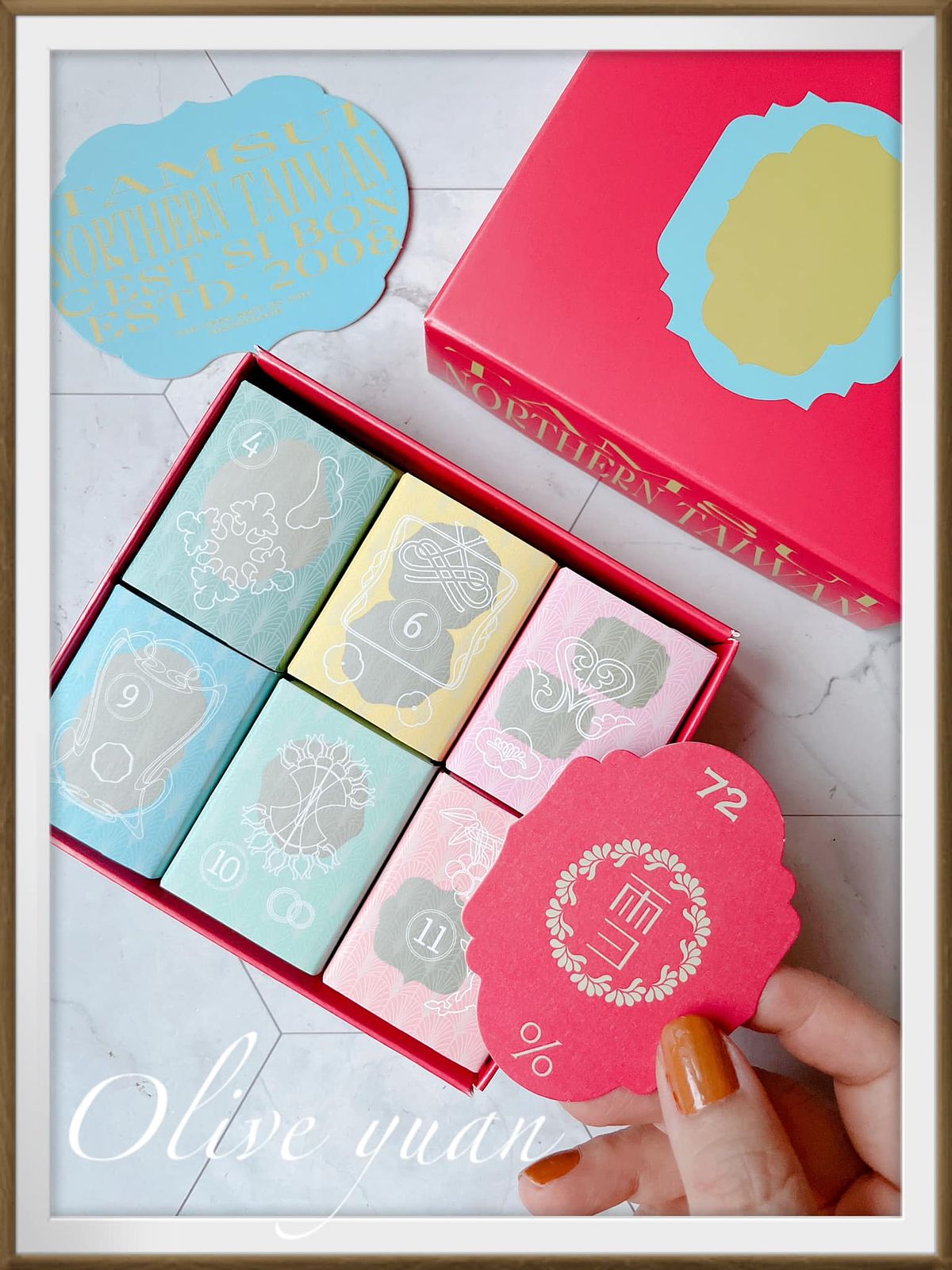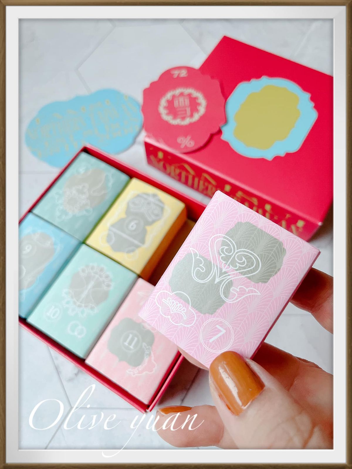 好~美~喔~但它們不是月餅喔!唉呀台灣的商品可以做到這種精緻度真的很優秀,這也是我的中秋節禮物—「雪文潤澤香氛皂」,打開時真的很驚艷,暫時捨不得用!
