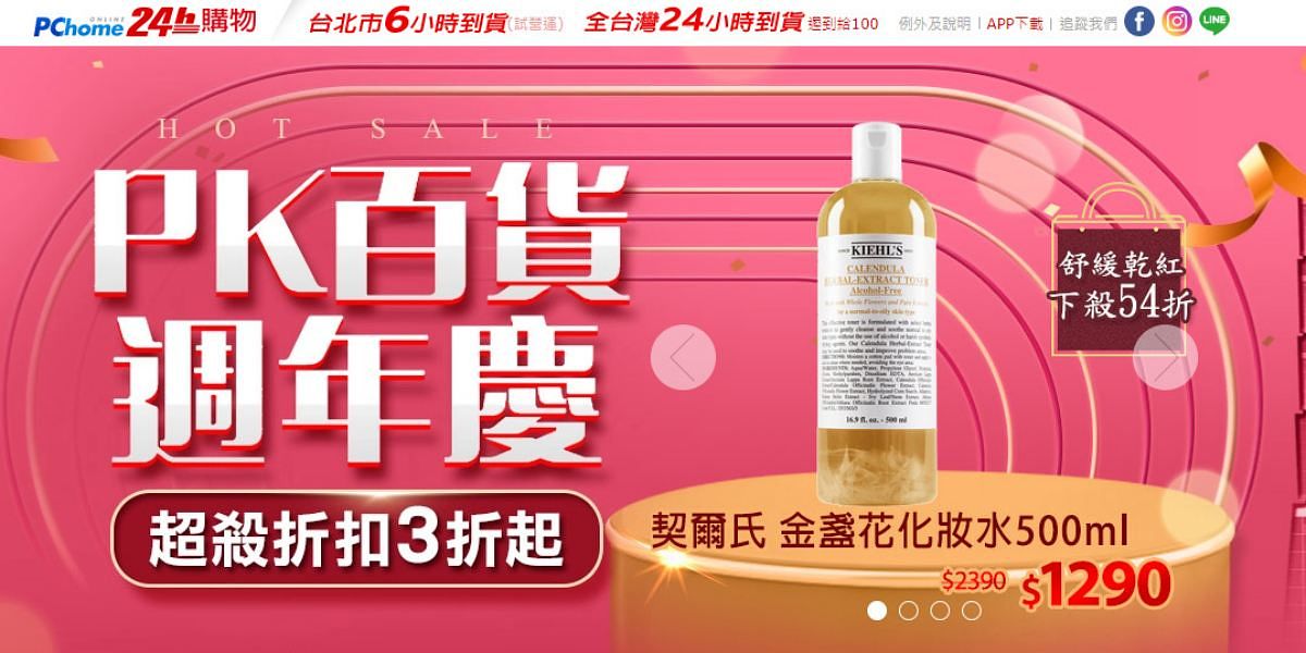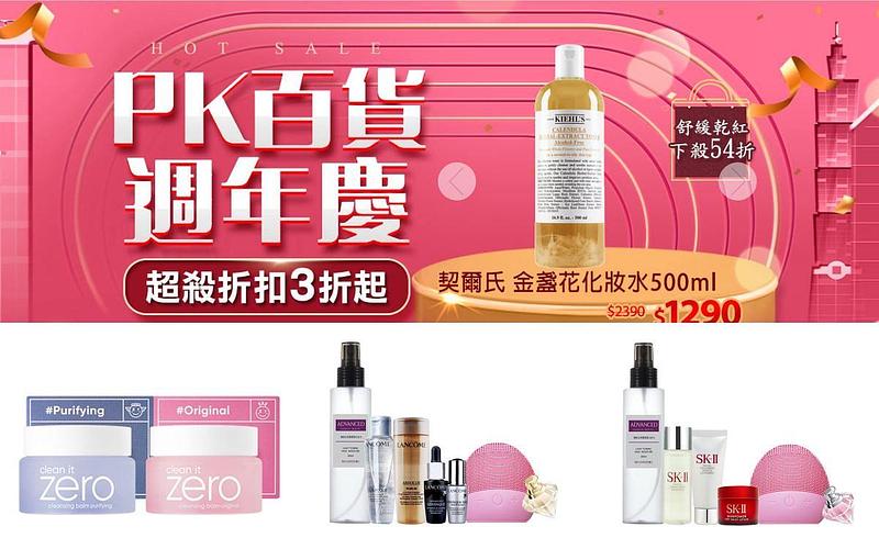 PChome 24h購物即日起開跑「PK百貨週年慶」專櫃美妝保養品祭甜甜價 超殺3折優惠