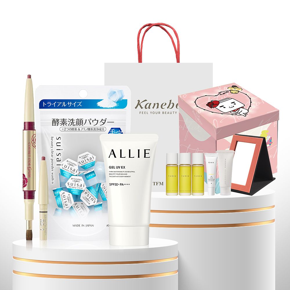 圖片來源:PChome 首波攜手日系彩妝保養霸主-「Kanebo 佳麗寶」旗下品牌,精選多樣明星熱銷商品,包含網友票選日本藥妝必敗好物的Suisai淨透酵素粉、海洋友善水潤不黏膩的ALLIE持采UV高效防曬水凝乳EX40g、THREE人氣熱銷的平衡潔膚油5ml X3、全新升級輕盈水感質地的RMK UV防護乳(高效保濕)、默默熱賣的Kanebo立體唇采筆/蕊,還有入門保養人氣品SUQQU活膚潤顏潔膚皂霜6g以及三折鏡,從清潔保養到彩妝一次入手,全方位滿足您的美麗與護膚需求,限量150盒,售價888元即可入手總價值超過2,000元的美妝商品!
