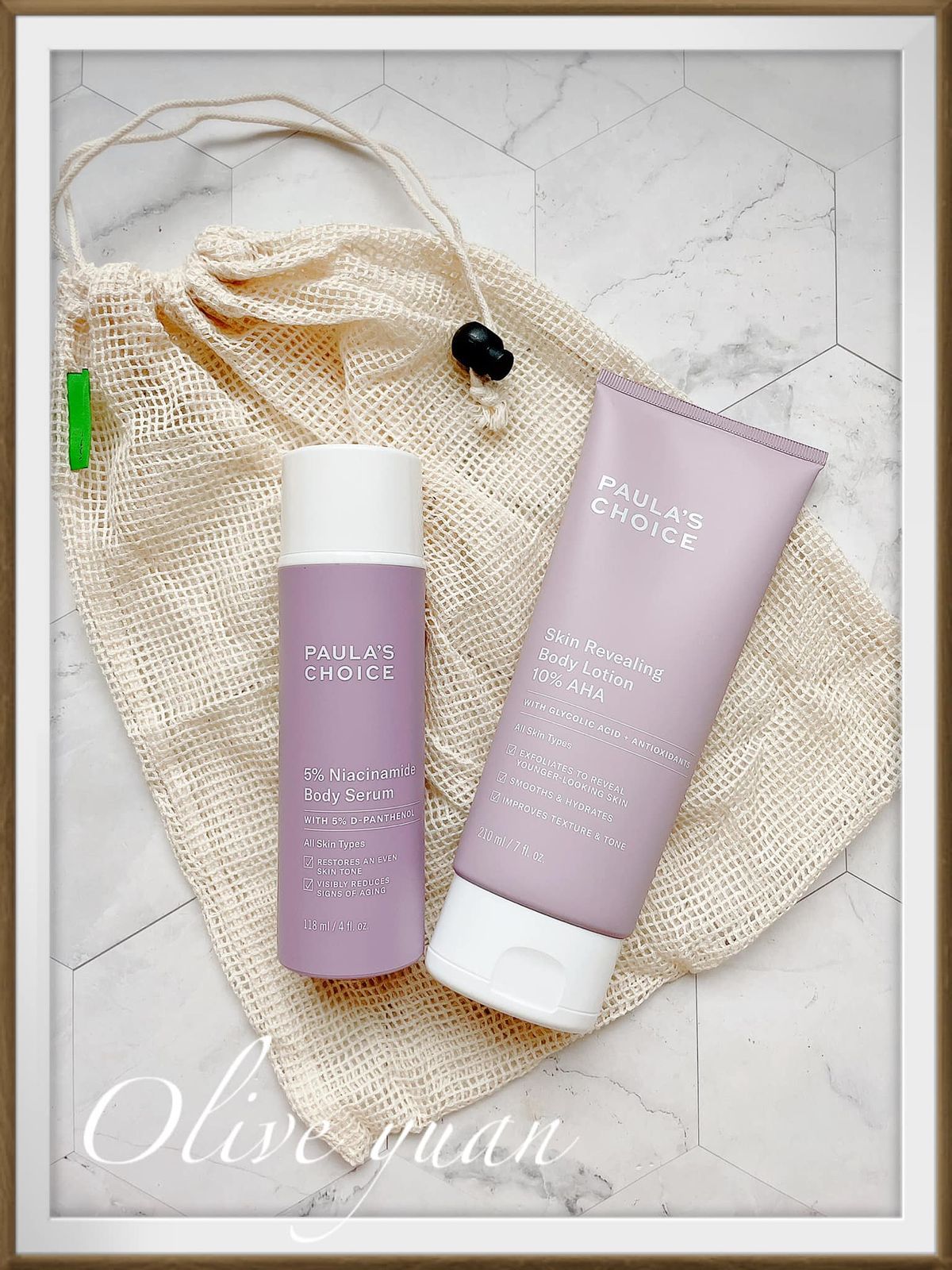 這漂亮的禮盒是可回收的紙盒,還有可重覆利用的棉麻環保袋,我入手的是新品「5% B3勻亮身體精華乳」及「10%果酸身體乳」。「寶拉珍選」有兩款明星身體乳,一款是2%水楊酸針對痘痘肌,另一款是10%果酸針對黯沉,可選擇任一款與5% B3搭配疊擦,這就是「寶拉珍選」的「1+1」身體拋光術,冬天也非常適合。
