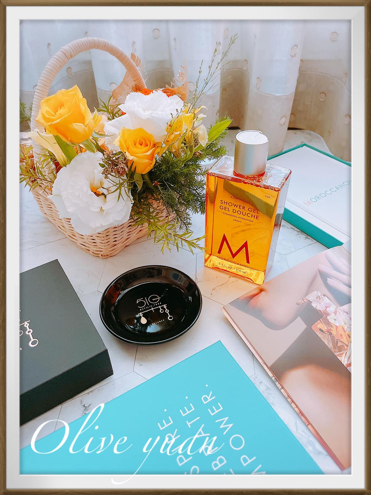 6大香氛總共有「摩洛哥經典香、梔子花園、黑琥珀、佛手柑、煙燻雪松、廣藿醋栗」,是不是全部都想要?!(品牌準備的花籃也好美喔)