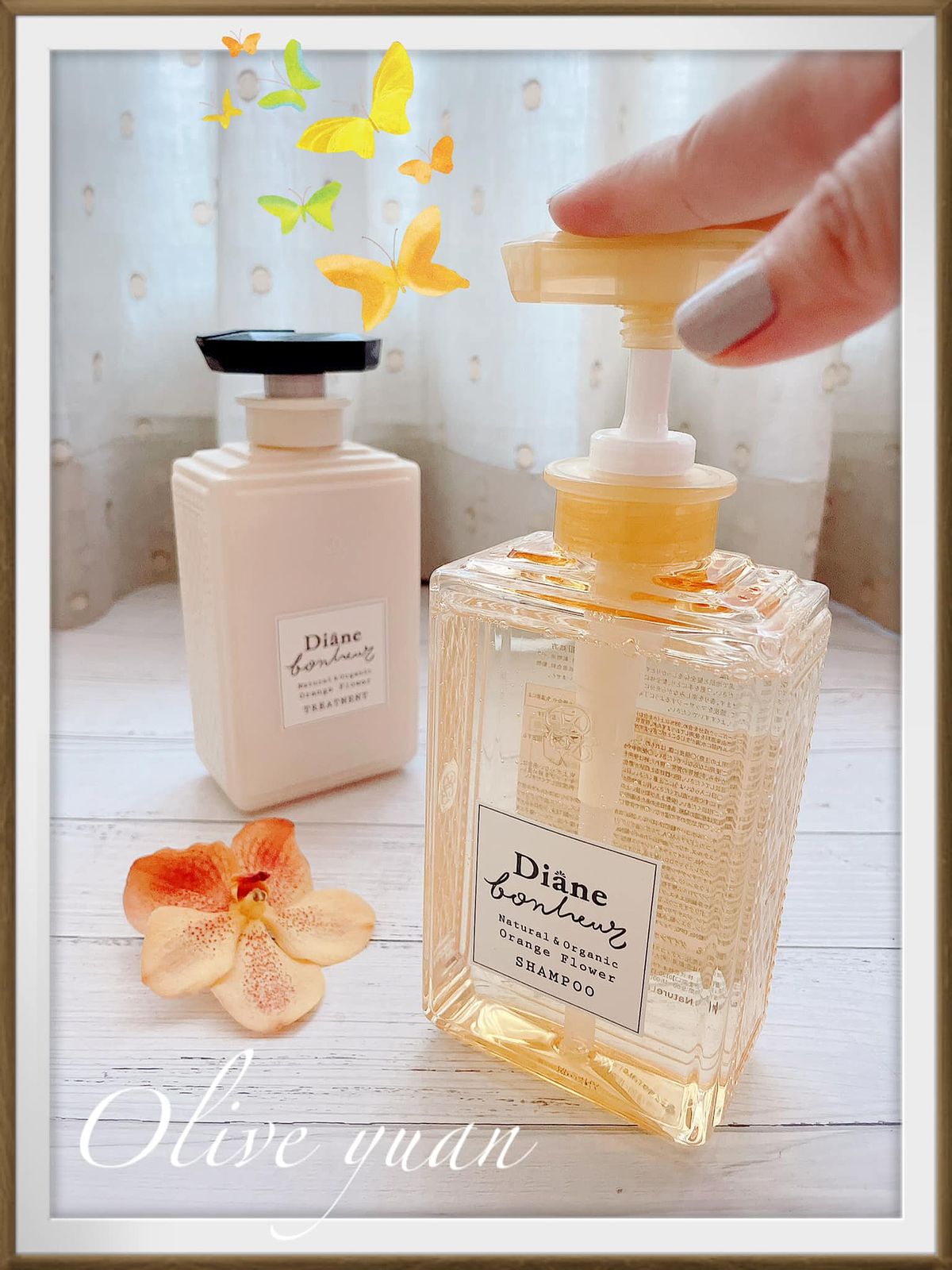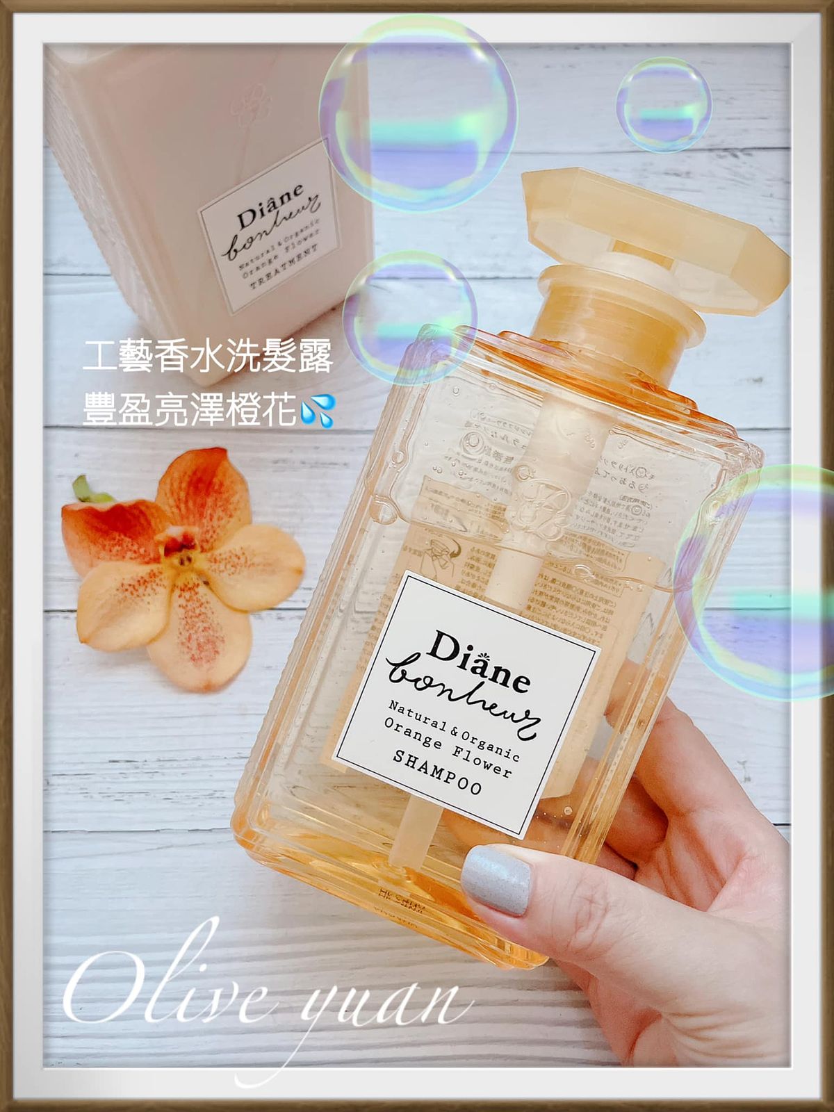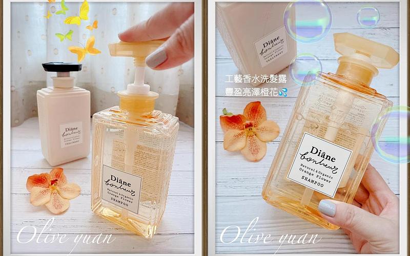 好!可!愛!發現「Diane工藝香水洗髮露」還蠻有質感的耶!除了瓶身很漂亮,有一種宮廷風之外,連壓頭也有鑽石形狀設計,這個系列有兩款,我入手的是「豐盈亮澤橙花洗髮露」及「豐盈亮澤橙花護髮素」,整組是漂亮的橙花色。