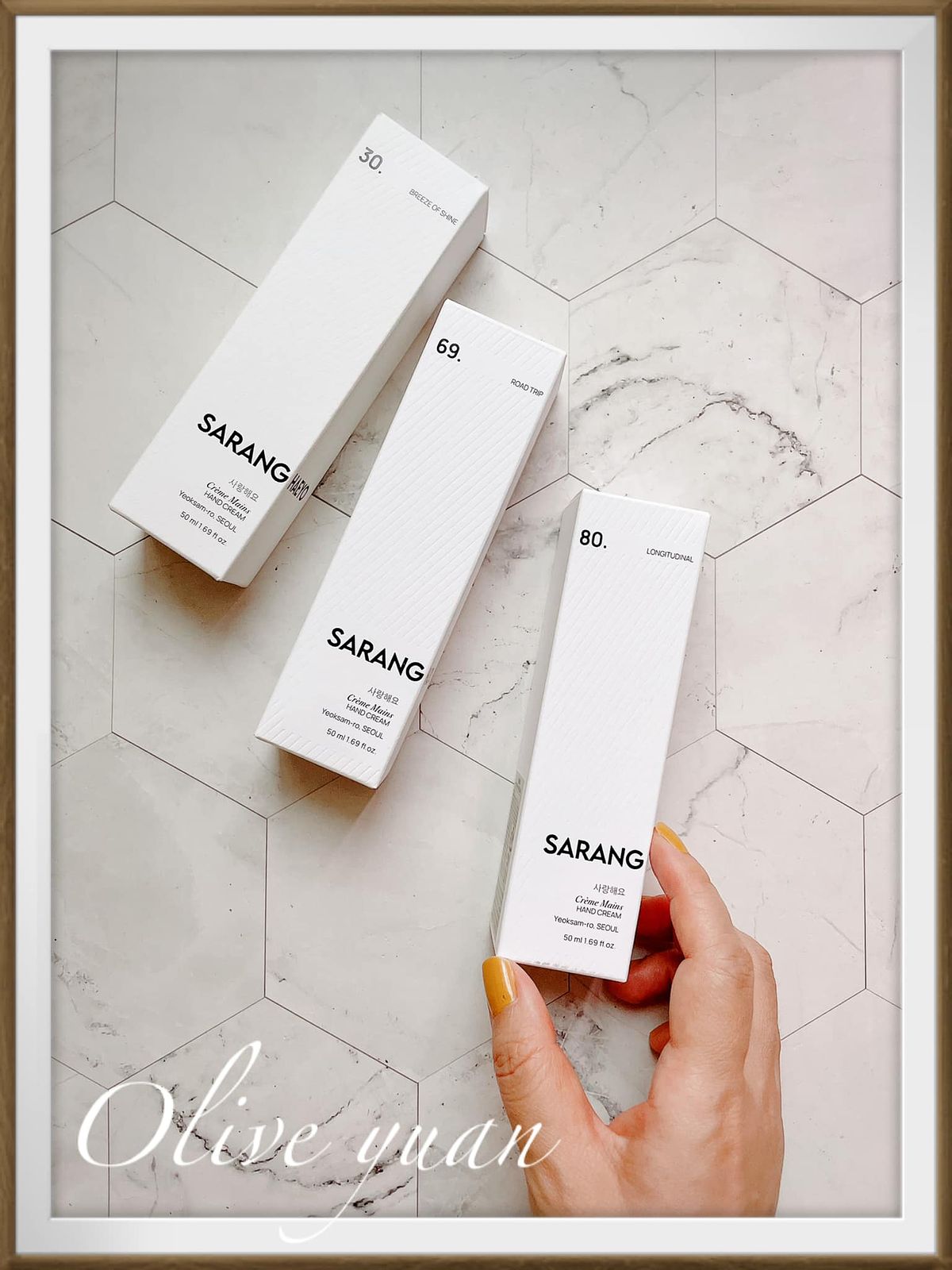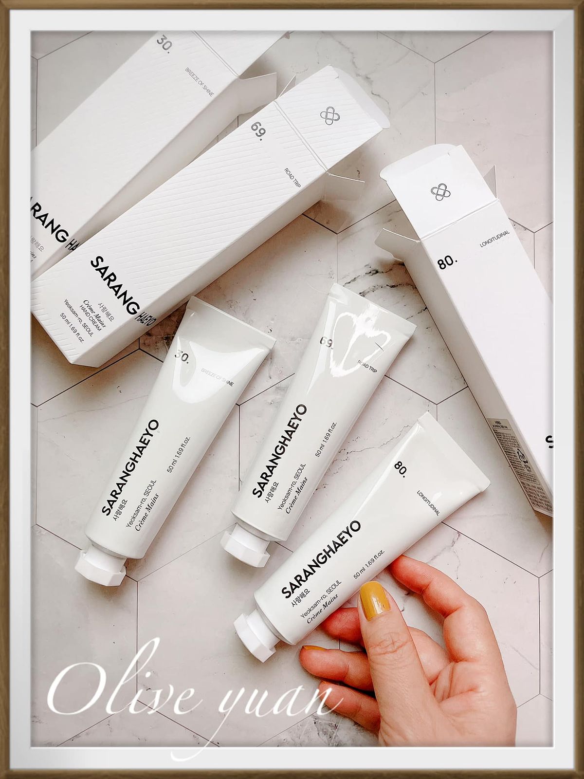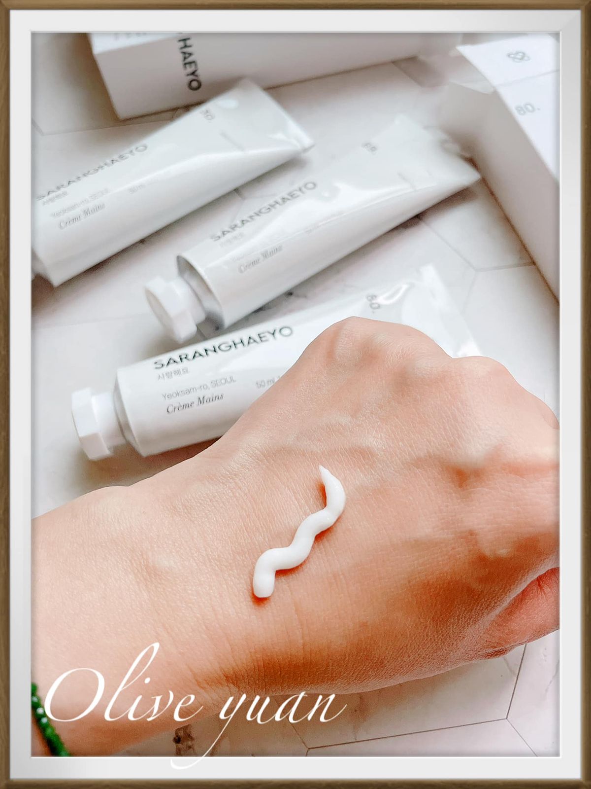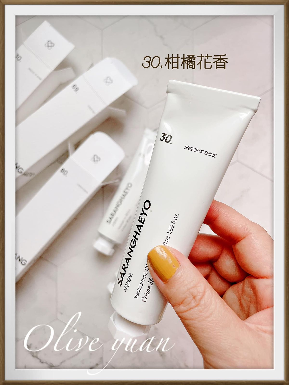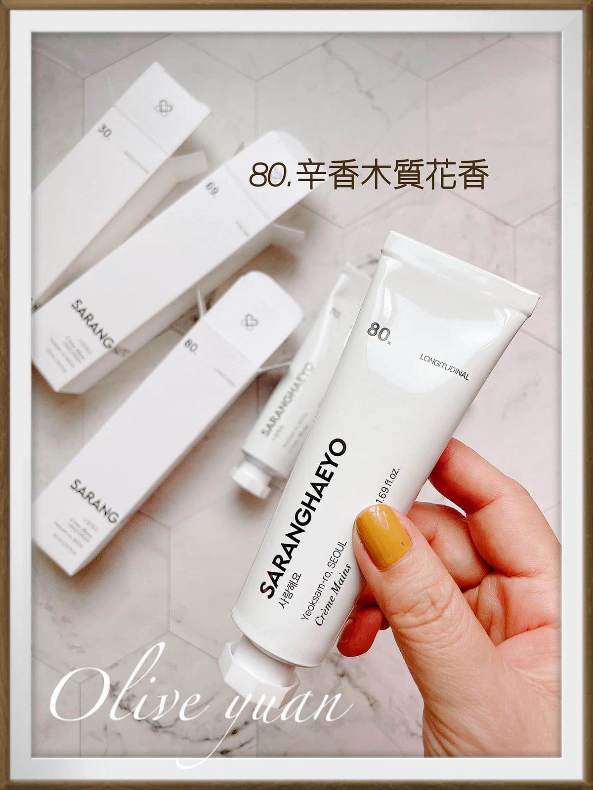 這款韓國「SARANGHAEYO」香水護手霜還不錯喔!主要成分有乳木果油、夏威夷果油、荷荷芭油,所以對肌膚的滋潤度絕對足夠!用起來有厚潤感但好吸收,所以肌膚能感受到被保護,保濕度也很好喔!(50ml NT480)