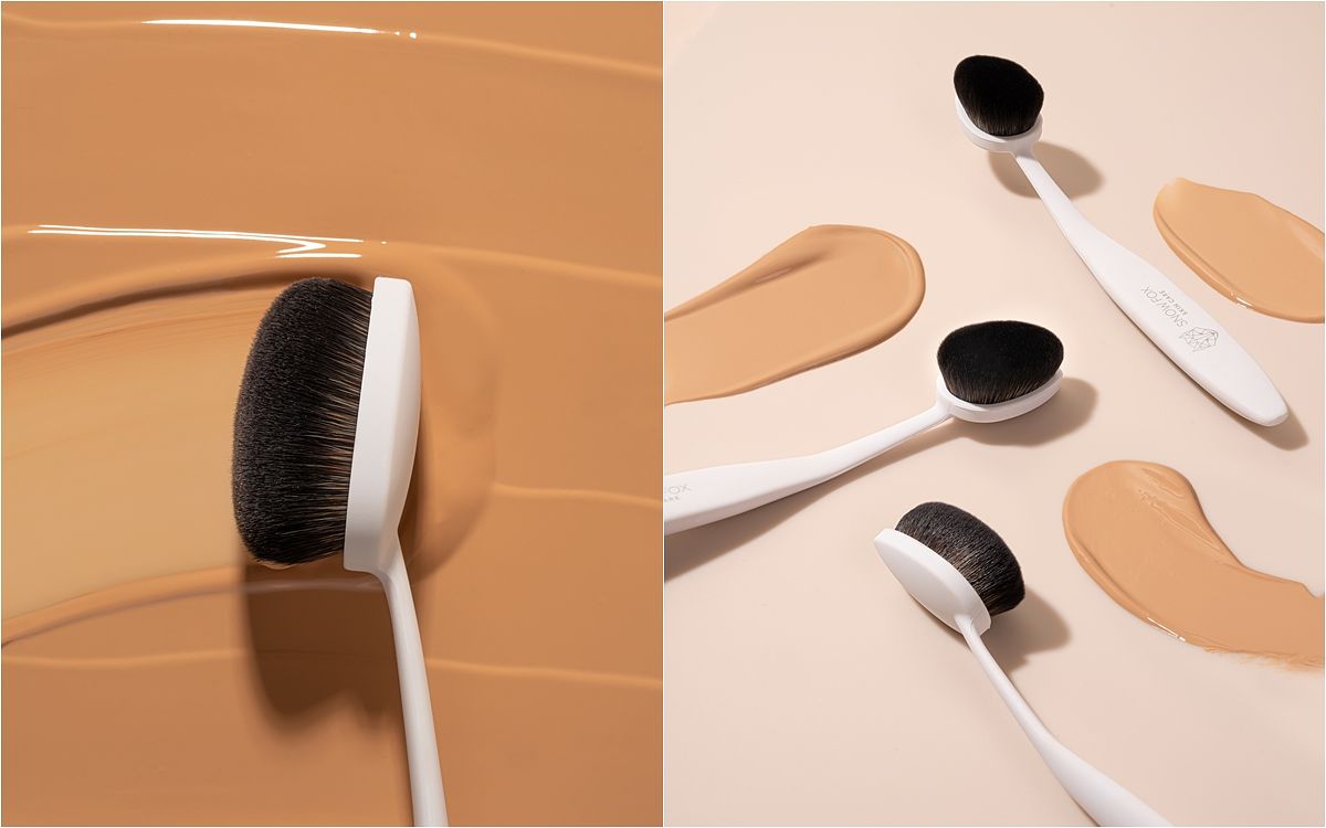 專為粉底液、粉底霜、遮瑕膏、粉餅的寬柄牙刷型底妝刷,針對敏弱肌設計的超柔軟貂毛觸感的尼龍設計,純素者可安心使用。牙刷型設計尖頭可將粉底溫柔按壓到肌膚細微區塊,像是眼周、人中區域都能輕鬆上手完成。刷毛的優質抓粉能力,為每一回的上妝省下40%粉底使用量,輕盈彈拍粉底與肌膚緊密結合,展現雲朵般的輕柔絲滑光感。搭配刷蓋設計,完整刷毛衛生防污染。